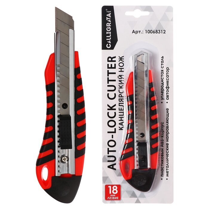 Нож канцелярский Calligrata TOP, 18 мм, пластиковый, с фиксатором, прорезиненный, 1 шт