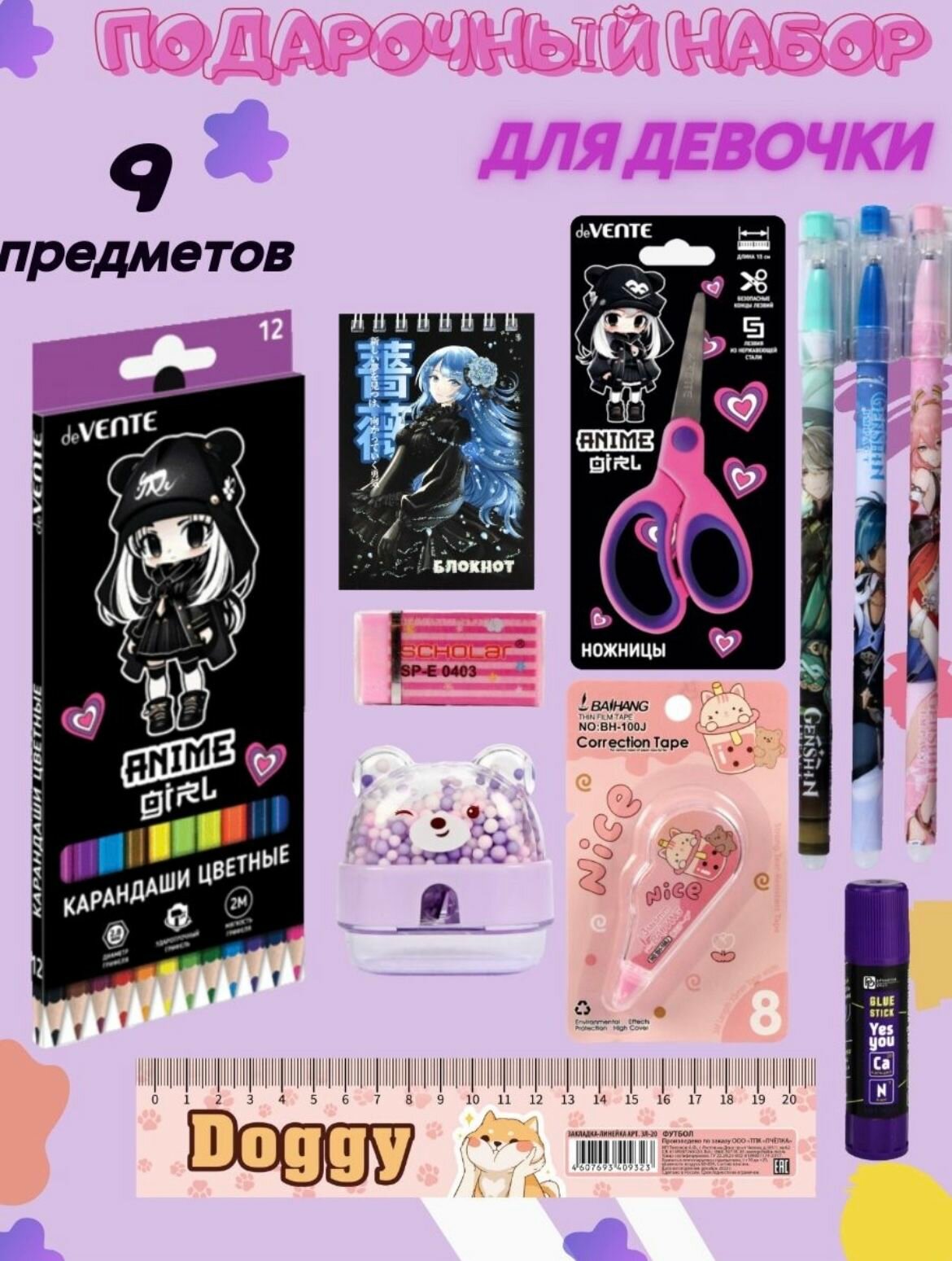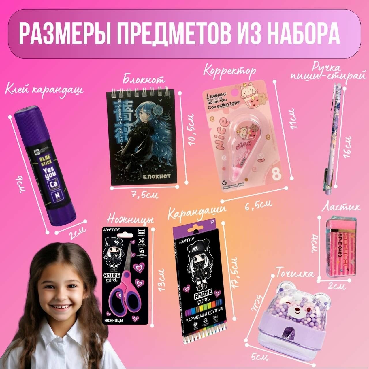 Подарочный набор первоклассника / Набор творчества для девочки / канцелярия анимэ для школьника интересное: