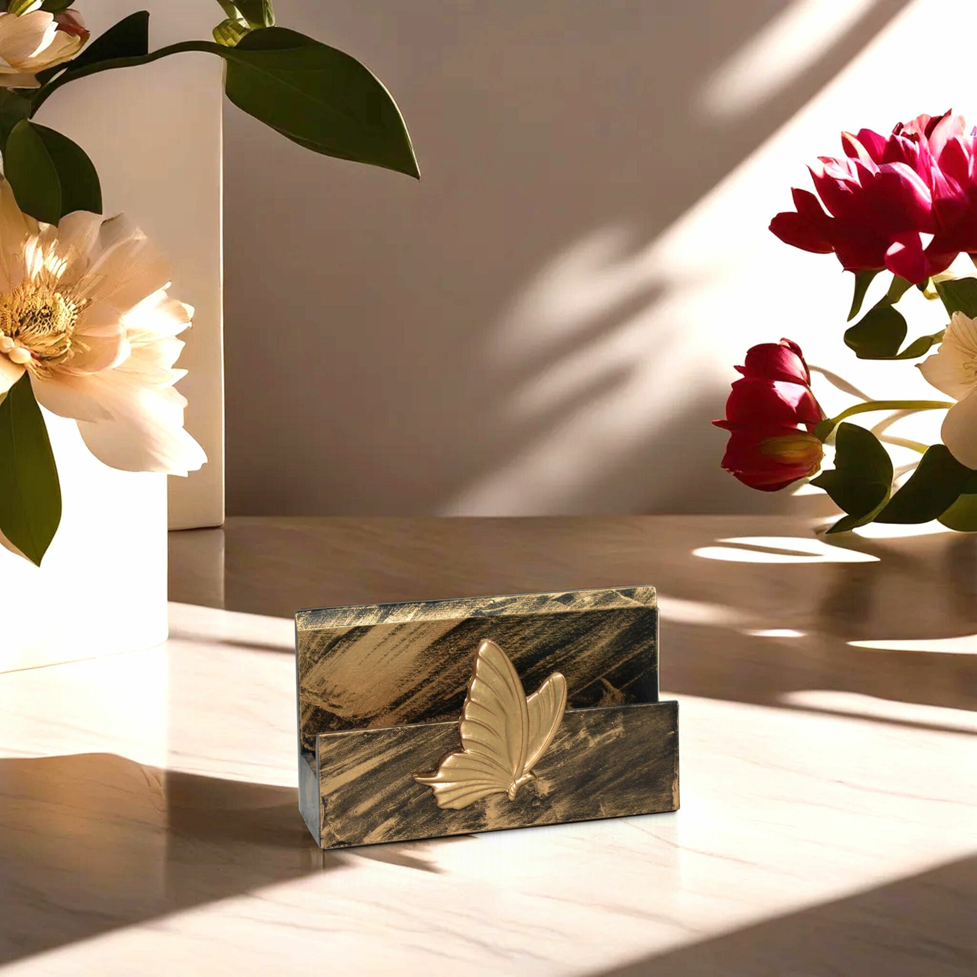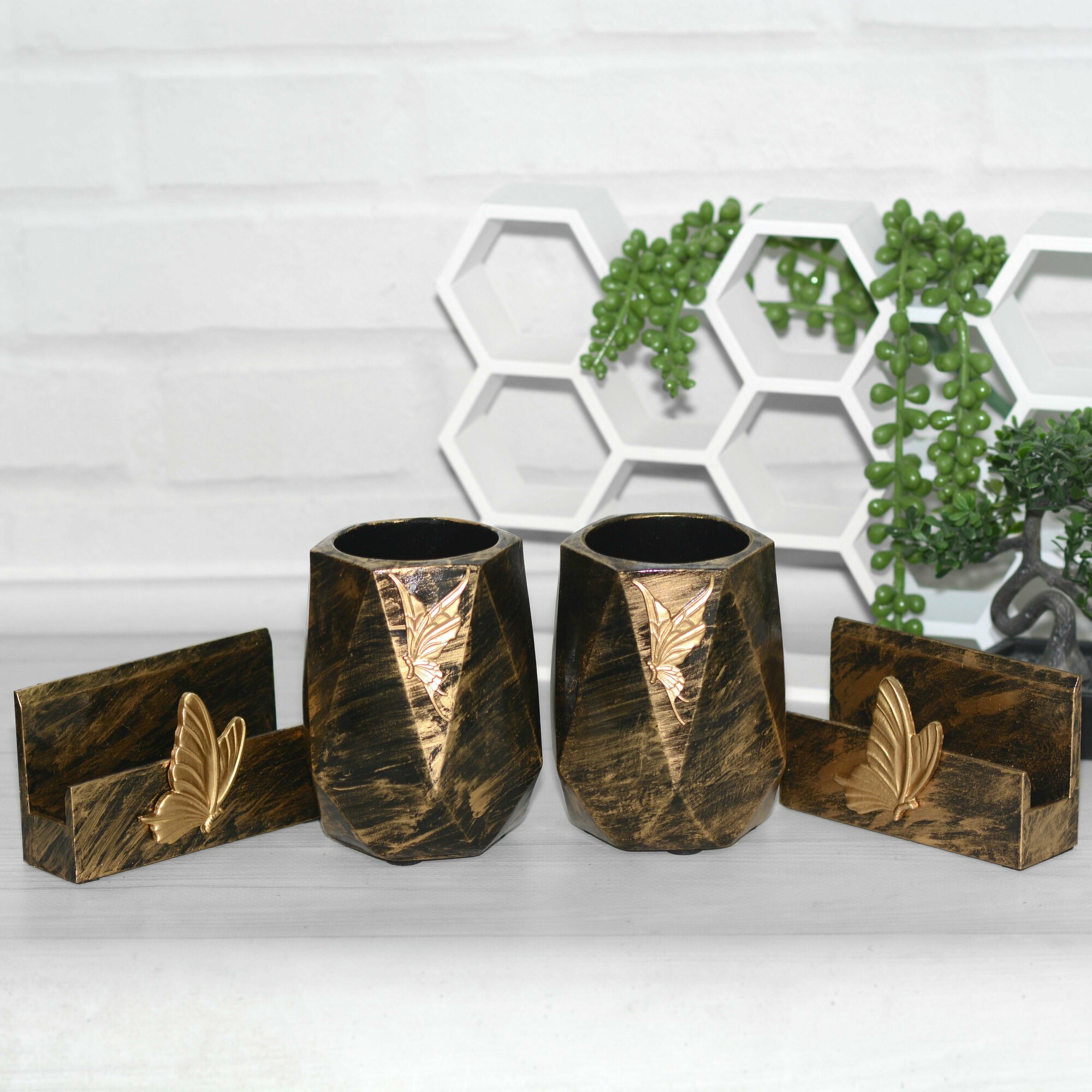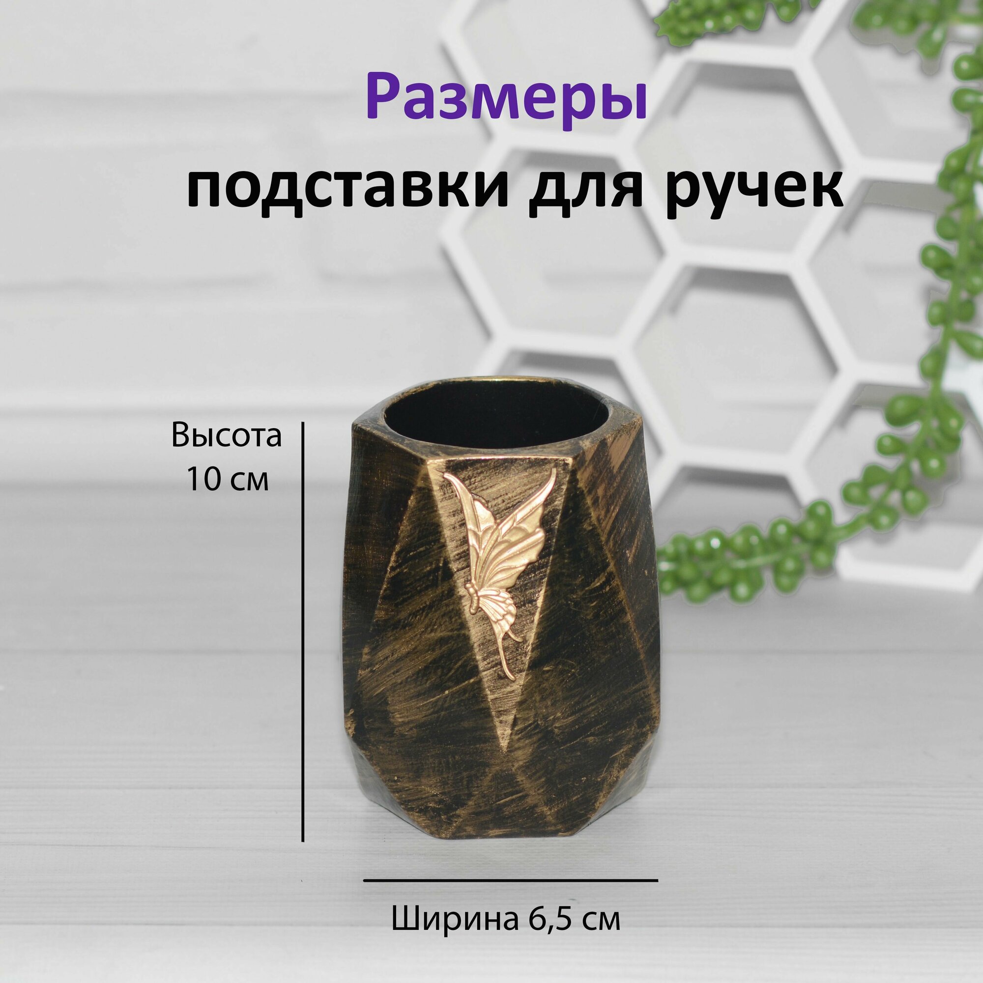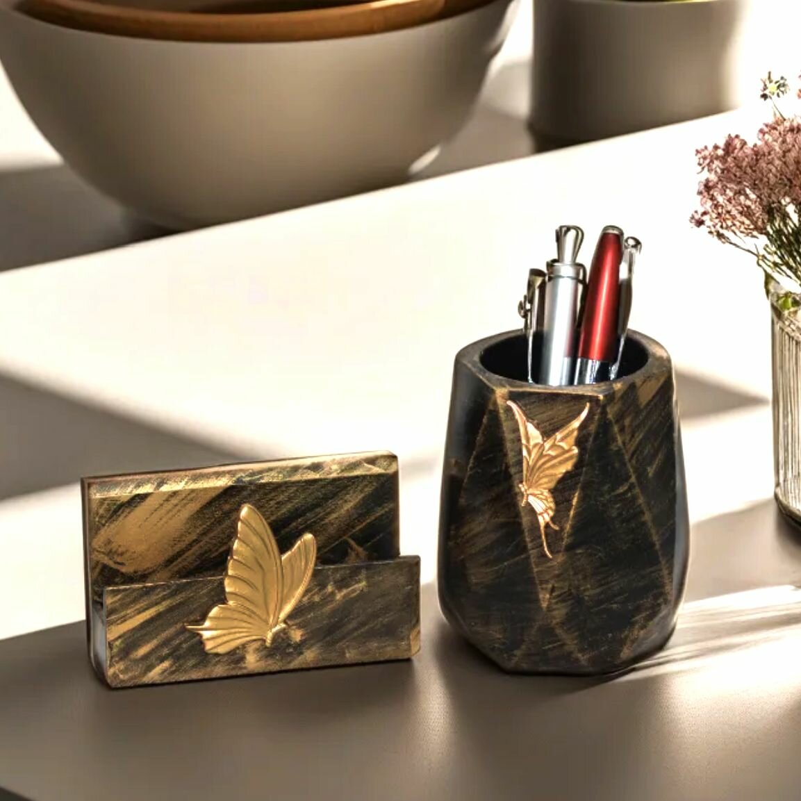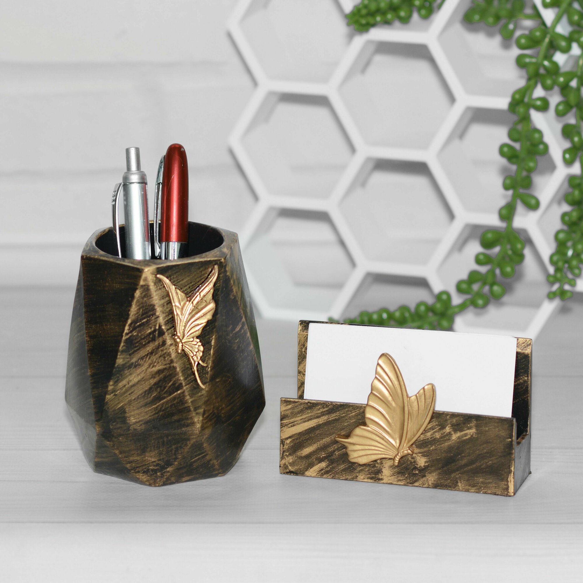 Купить Органайзер для канцелярии Бабочки: Подставка для ручек и визитница // Цвет Черное золото