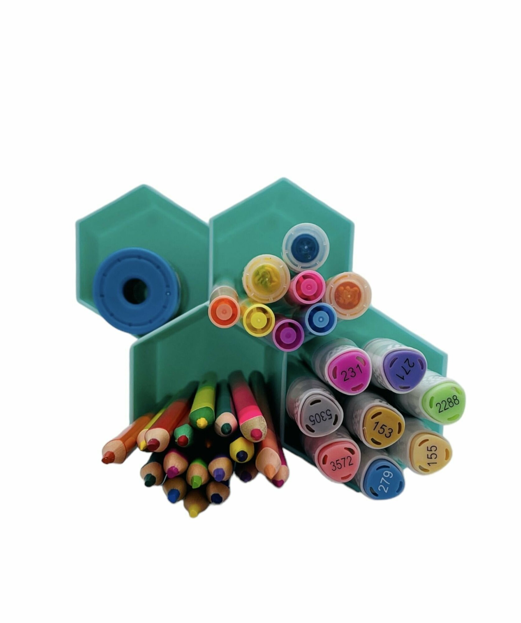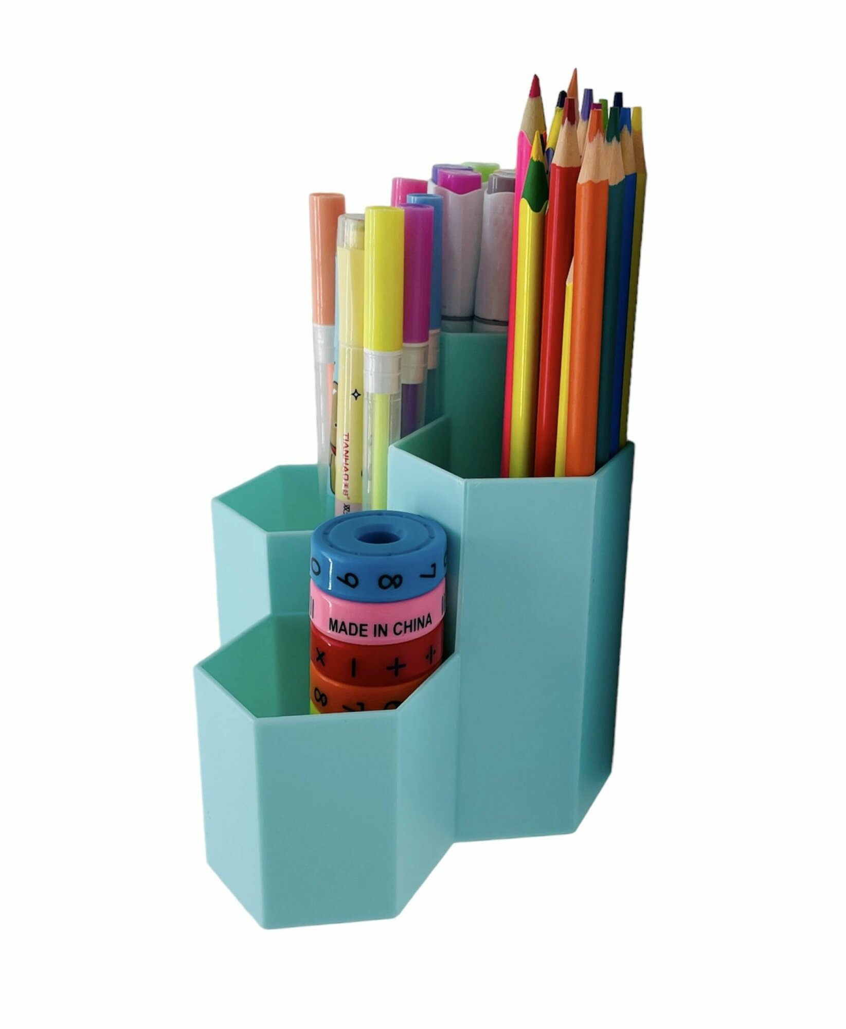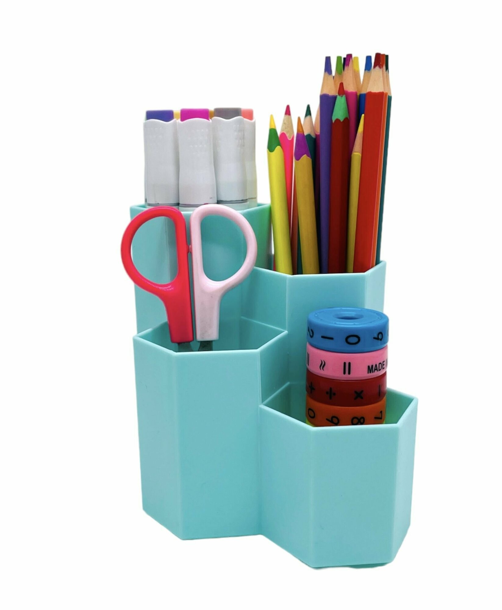 Купить Настольный "Шестигранник" на 4 секции для хранения канцелярии мелочей, ручек и карандашей.
