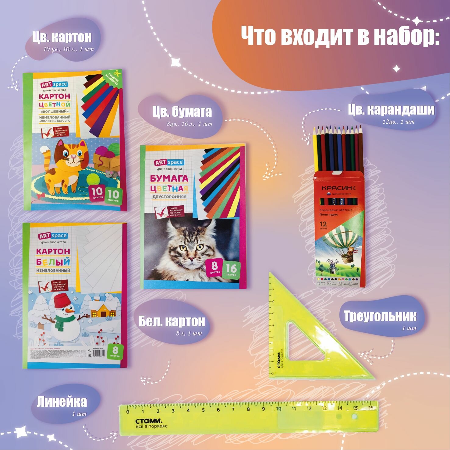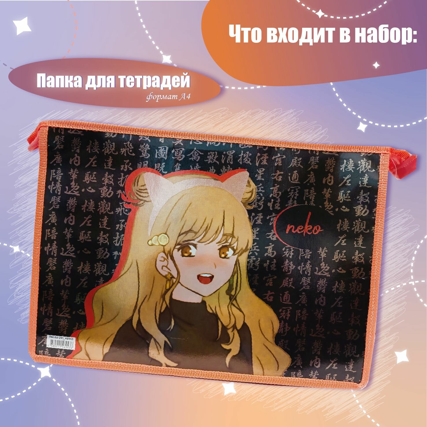 Купить Набор для начальной школы, для девочки 29 предметов "Каваи" в папке, набор школьных канцелярских принадлежностей