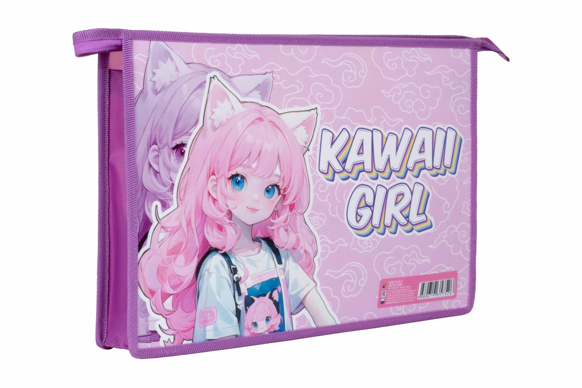 Школьный набор "аниме нэко" (папка А4, пенал, папка для тетрадей А5, сумка для обуви), Арт. 2803Нэко