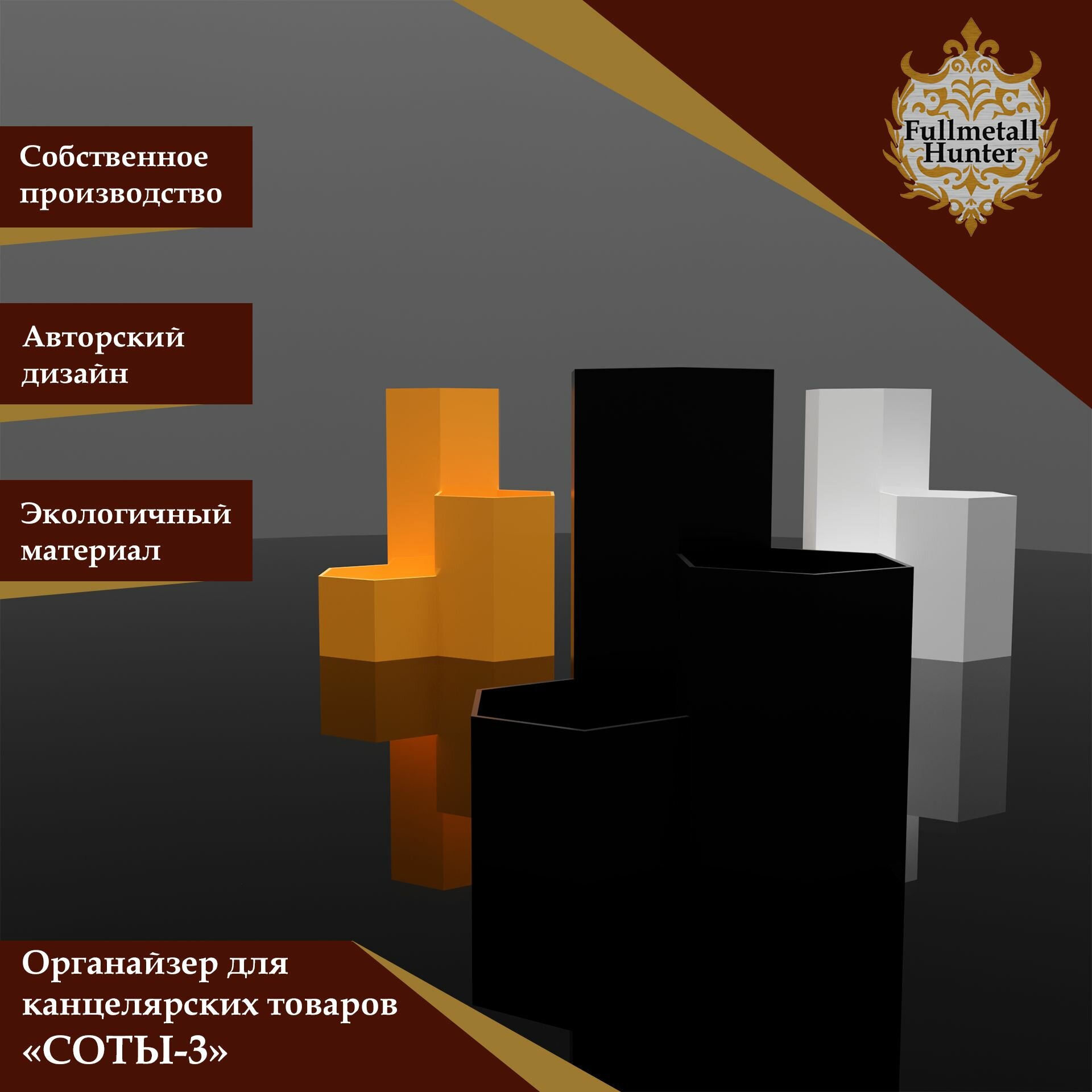 Органайзер для канцелярских товаров FullmetallHunter СОТЫ-3, авторский дизайн, экологичный материал, белый интересное: