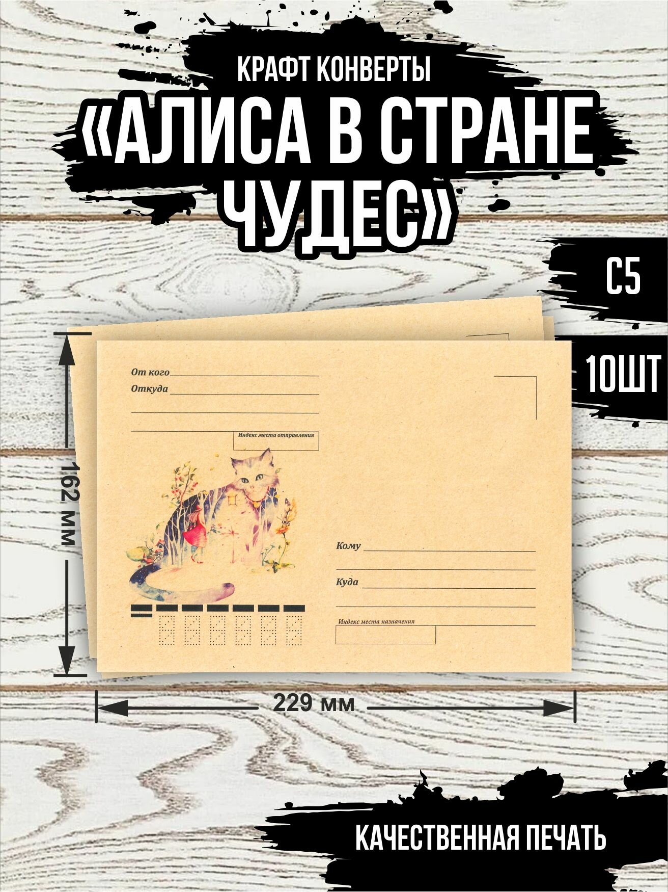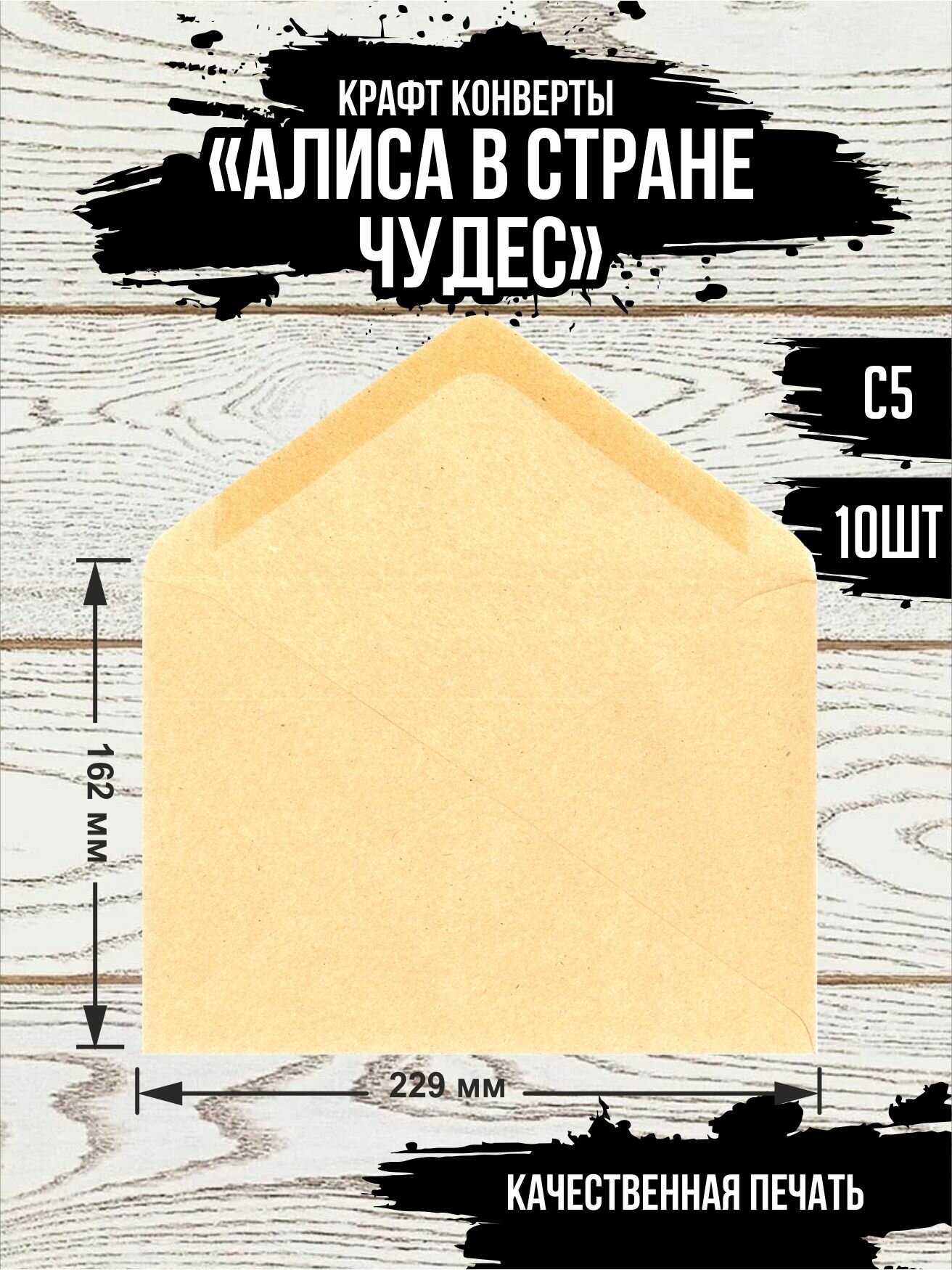 Почтовые крафт конверты "Алиса в стране чудес" 10 шт. С5 интересное: