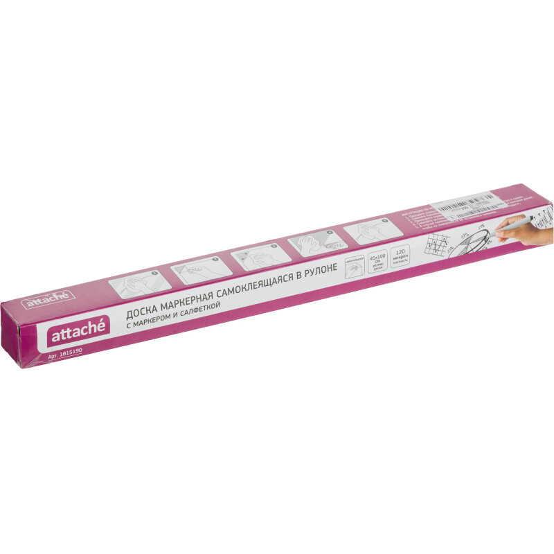 Купить Доска самоклеещаяся марк. в рулоне Attache,45x100 см, бел, маркер и салфетка, 2 шт.