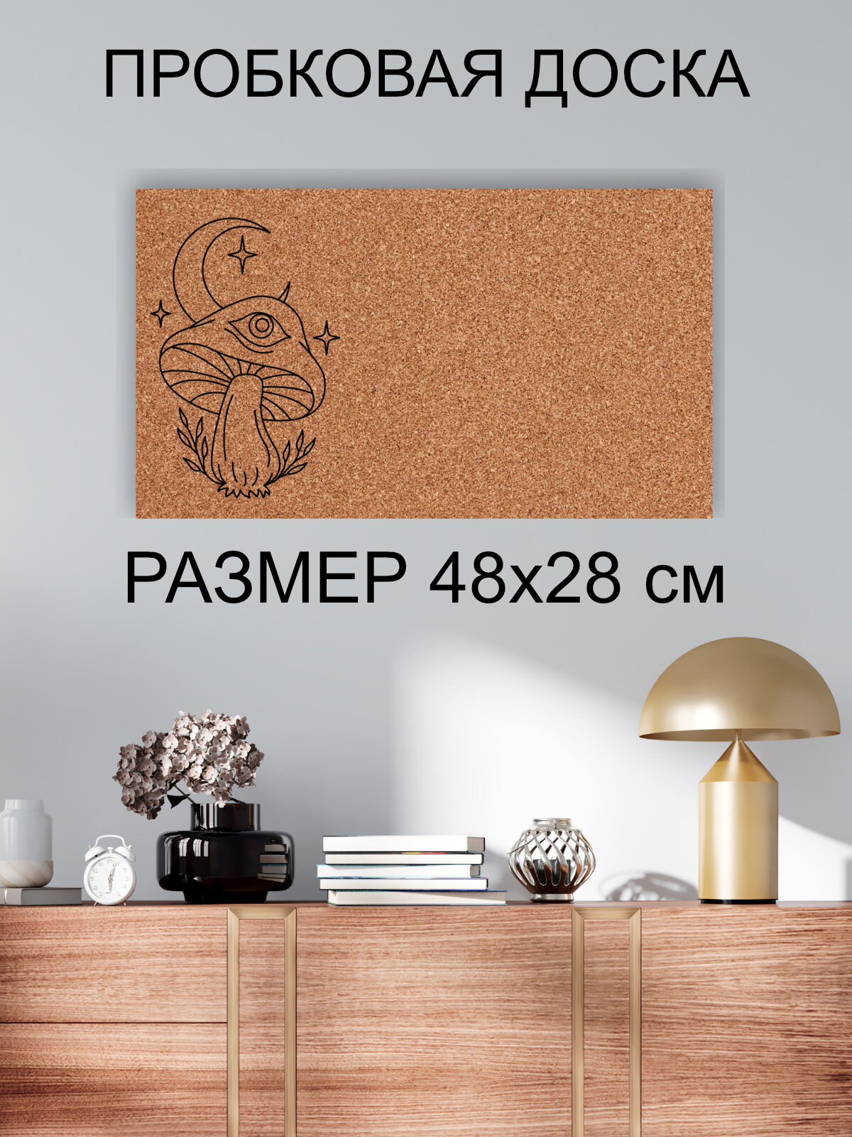 Пробковая доска' Грибочек с глазом ' 48х28 см. (Композиция с грибом, месяцом и звездами) интересное:
