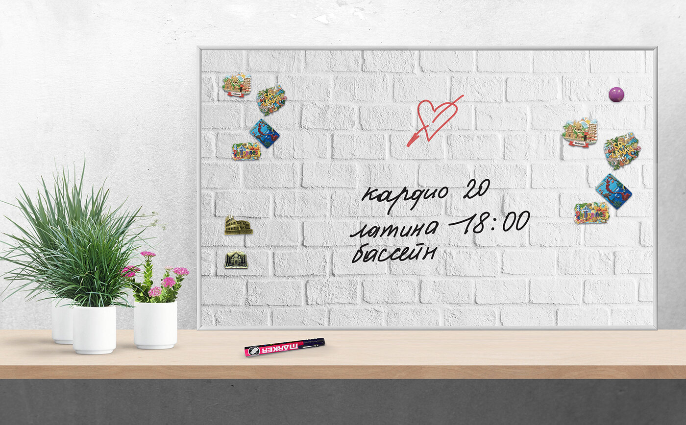 Доска настенная магнитно-маркерная, 80х50 см, АртБорд, "White Brick". интересное: