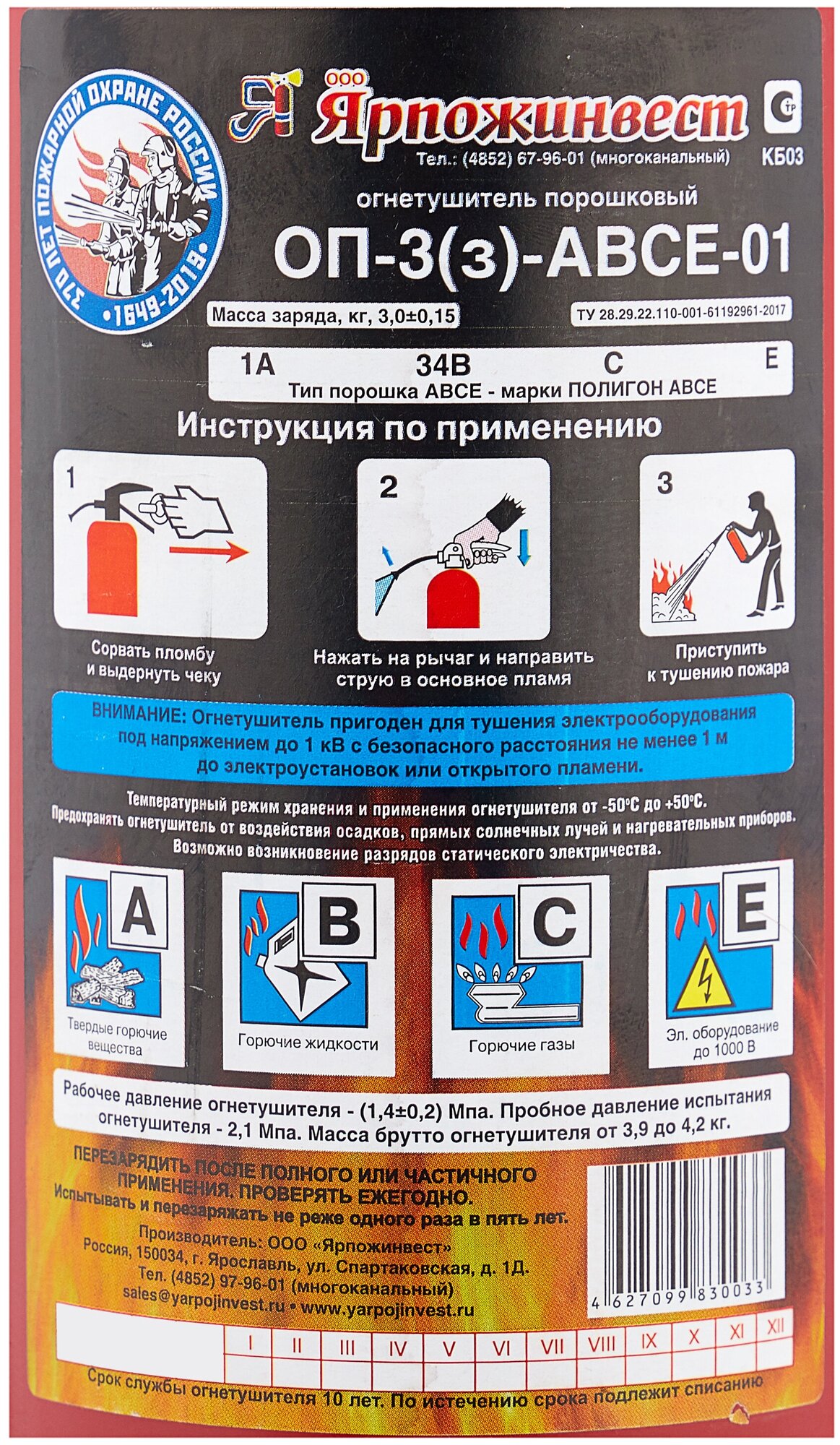 Огнетушитель Ярпожинвест ОП-3(з) АВСЕ ОГН-ОП3 интересное: