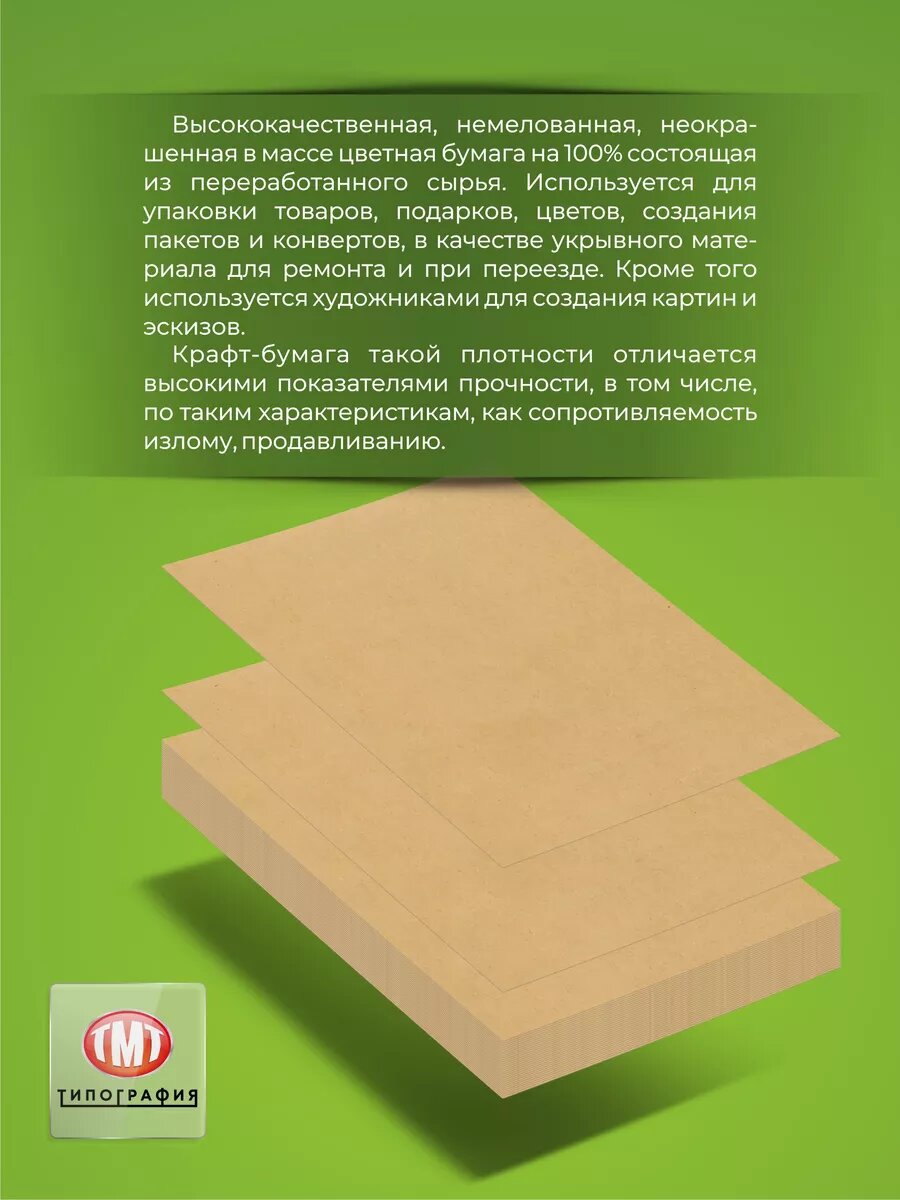 Крафт бумага от бренда Типография "ТМТ", формат А4, набор 100 листов интересное: