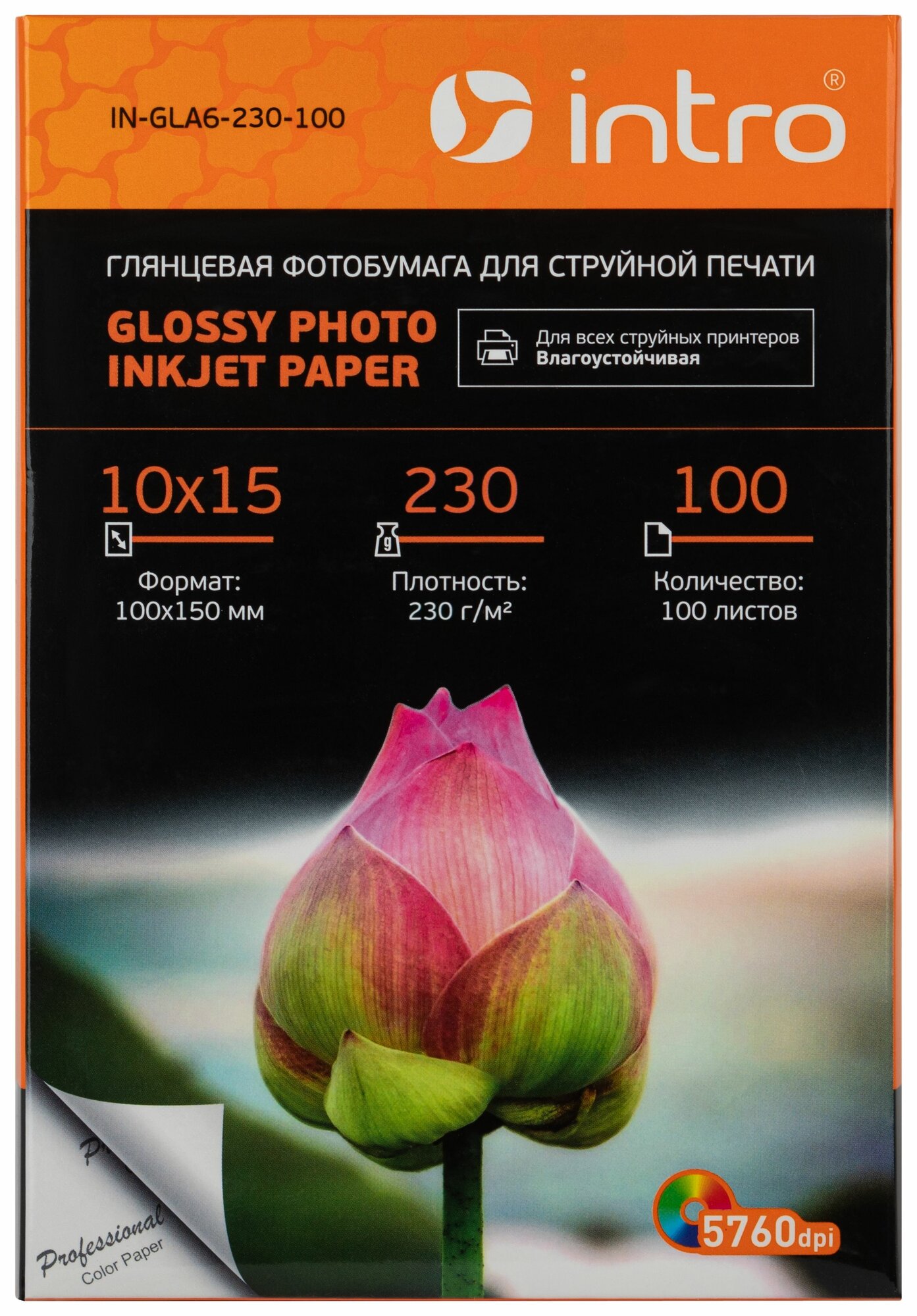 Купить Фотобумага Intro GLA6-230-100, A6 глянцевая, 230г/м2, 100 листов