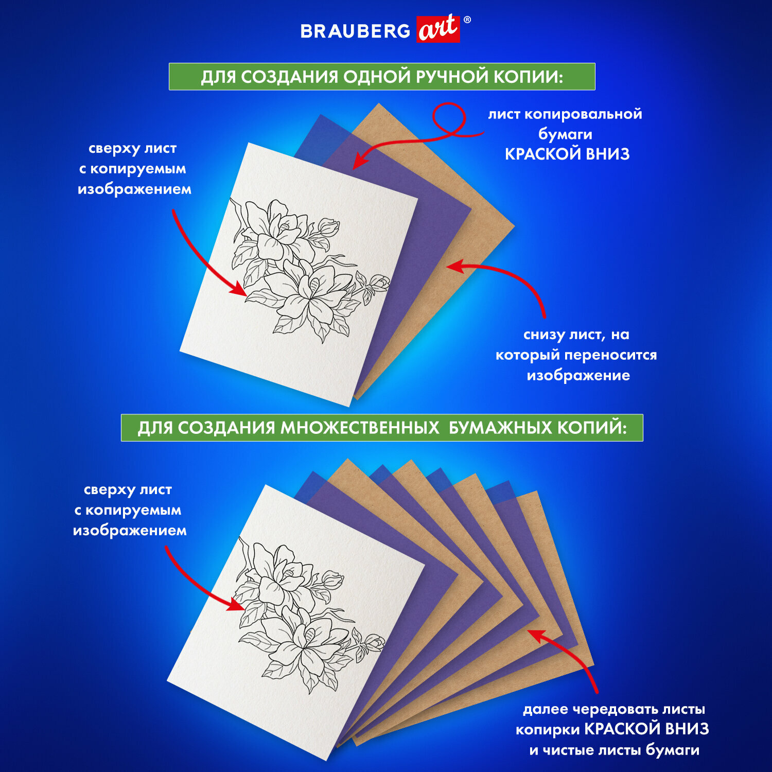 Копирка / бумага копировальная для копирования синяя А4, 50 листов, Brauberg Art Classic, 112402 интересное:
