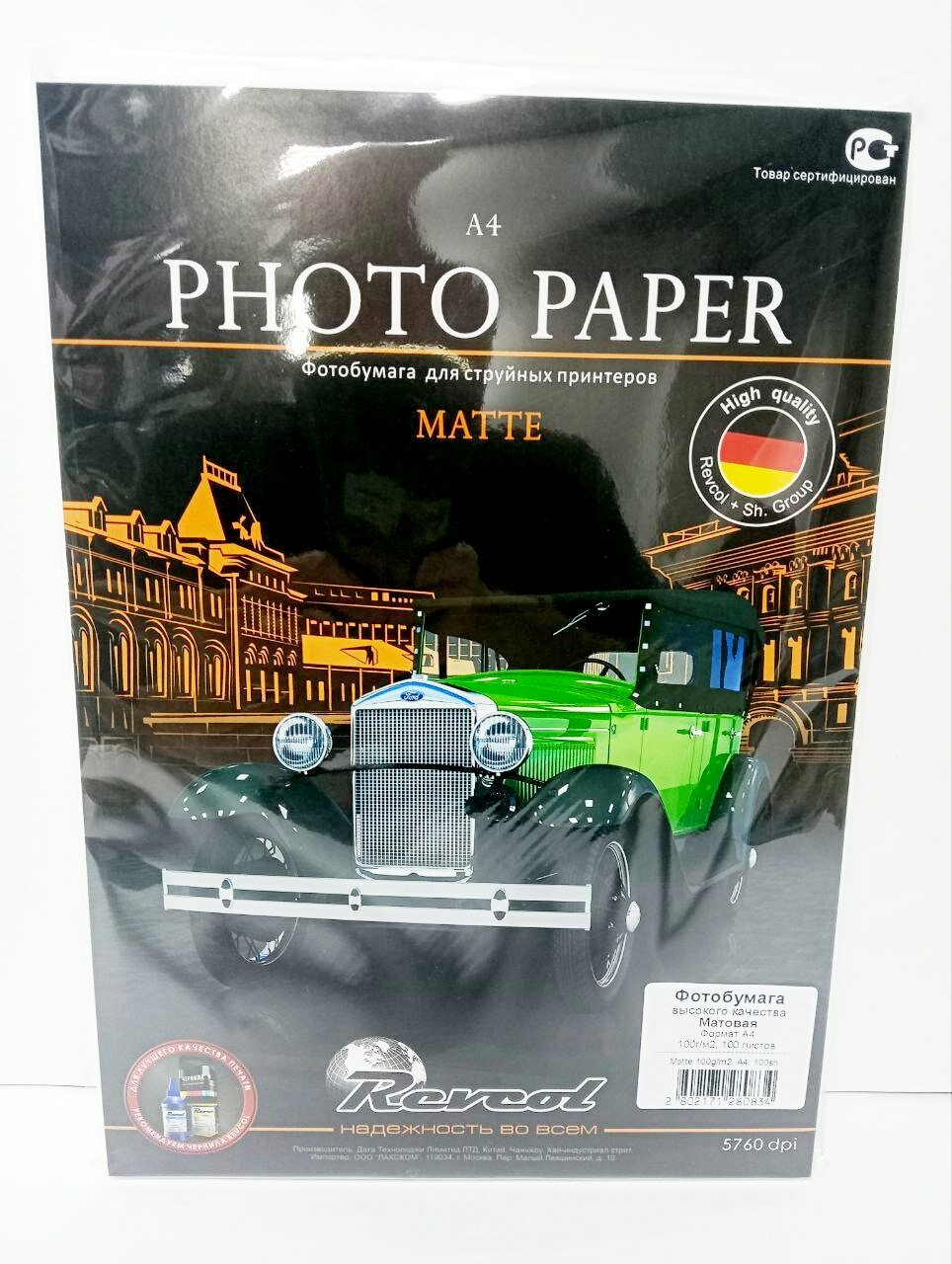 Фотобумага Revcol A4 матовая для струйных принтеров 100 гр/м2, 100 листов интересное: