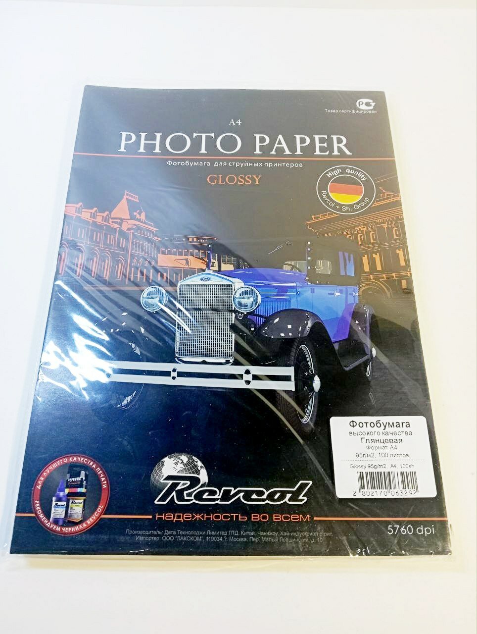 Фотобумага Revcol A4 глянцевая для струйных принтеров , 95 гр/м², 100 листов интересное:
