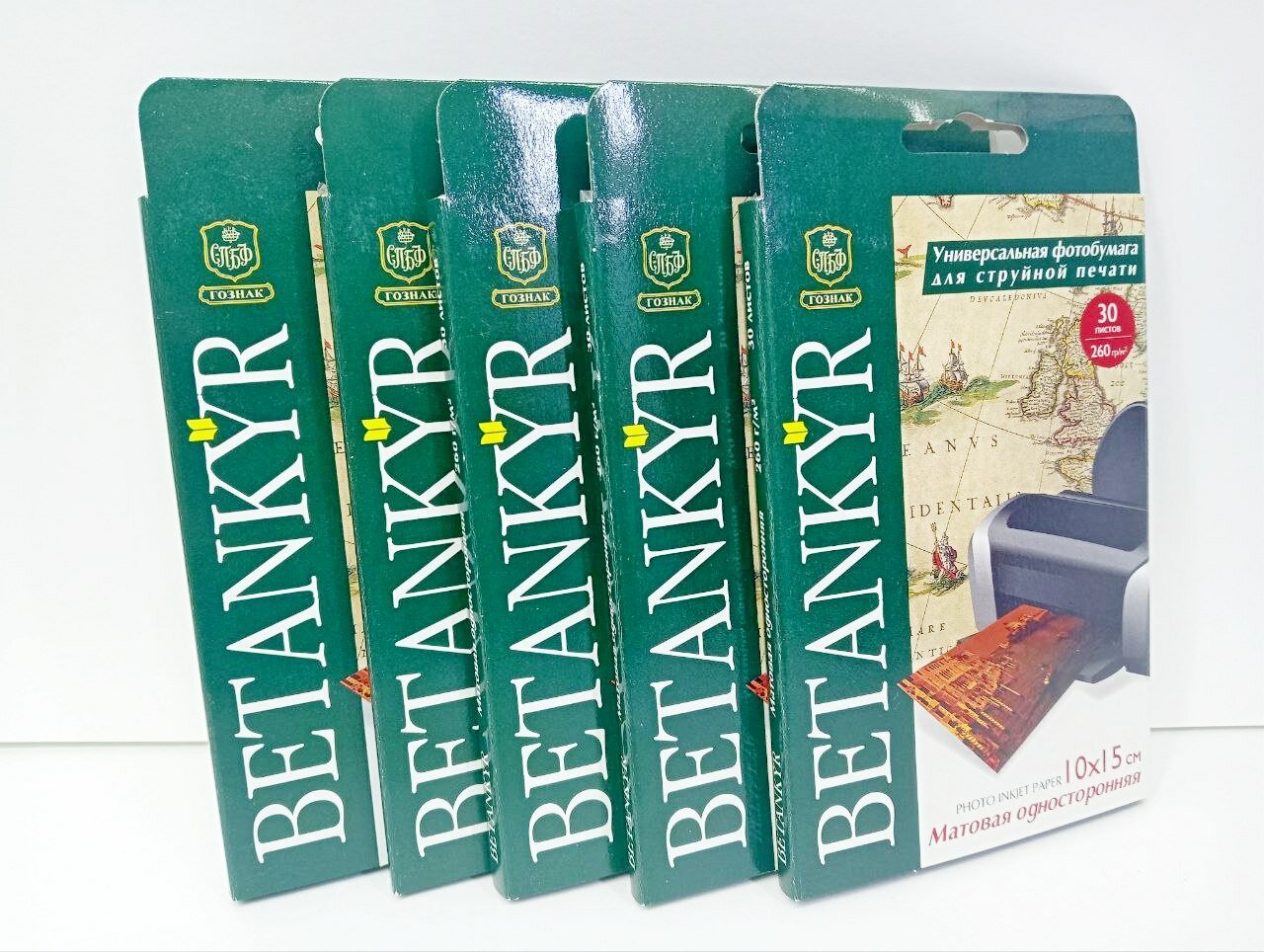 Фотобумага Гознак Betankyr матовая 10x15 260гр/м2, 5 пачек по 30 листов интересное: