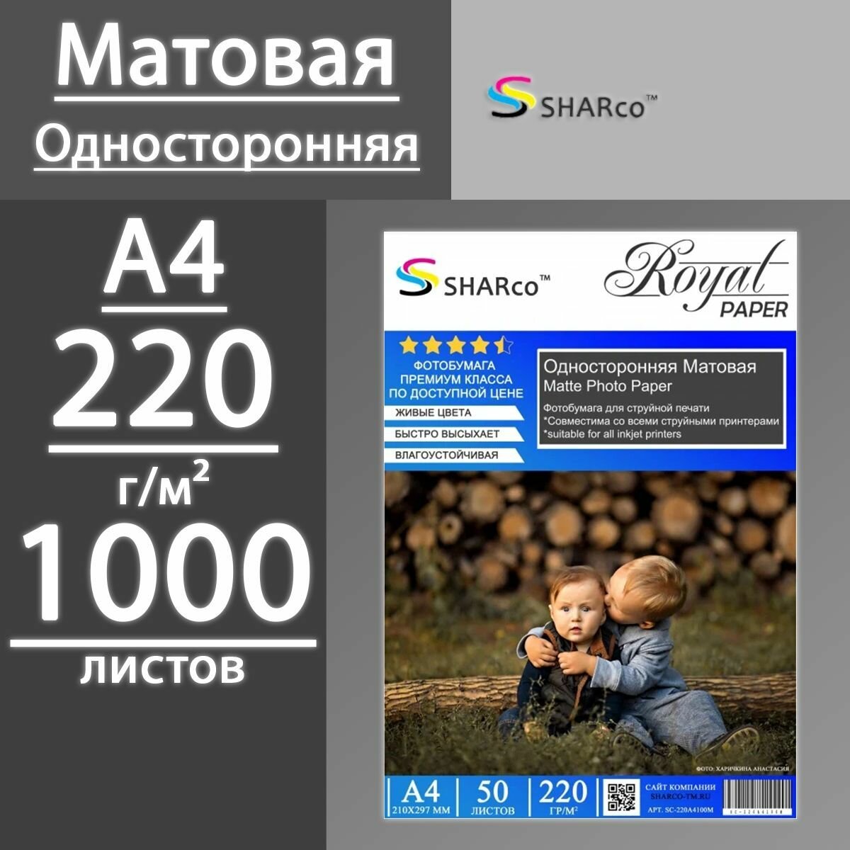 Фотобумага SHARco матовая односторонняя 220 г, А4, 1000 листов (20 пачек по 50 л) интересное: