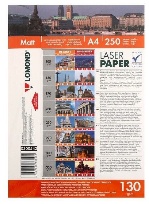 Бумага для лазерной печати Lomond A4, 130 г/м2 (250 листов) матовая двусторонняя фотобумага (Matt DS Color) (0300542) интересное: