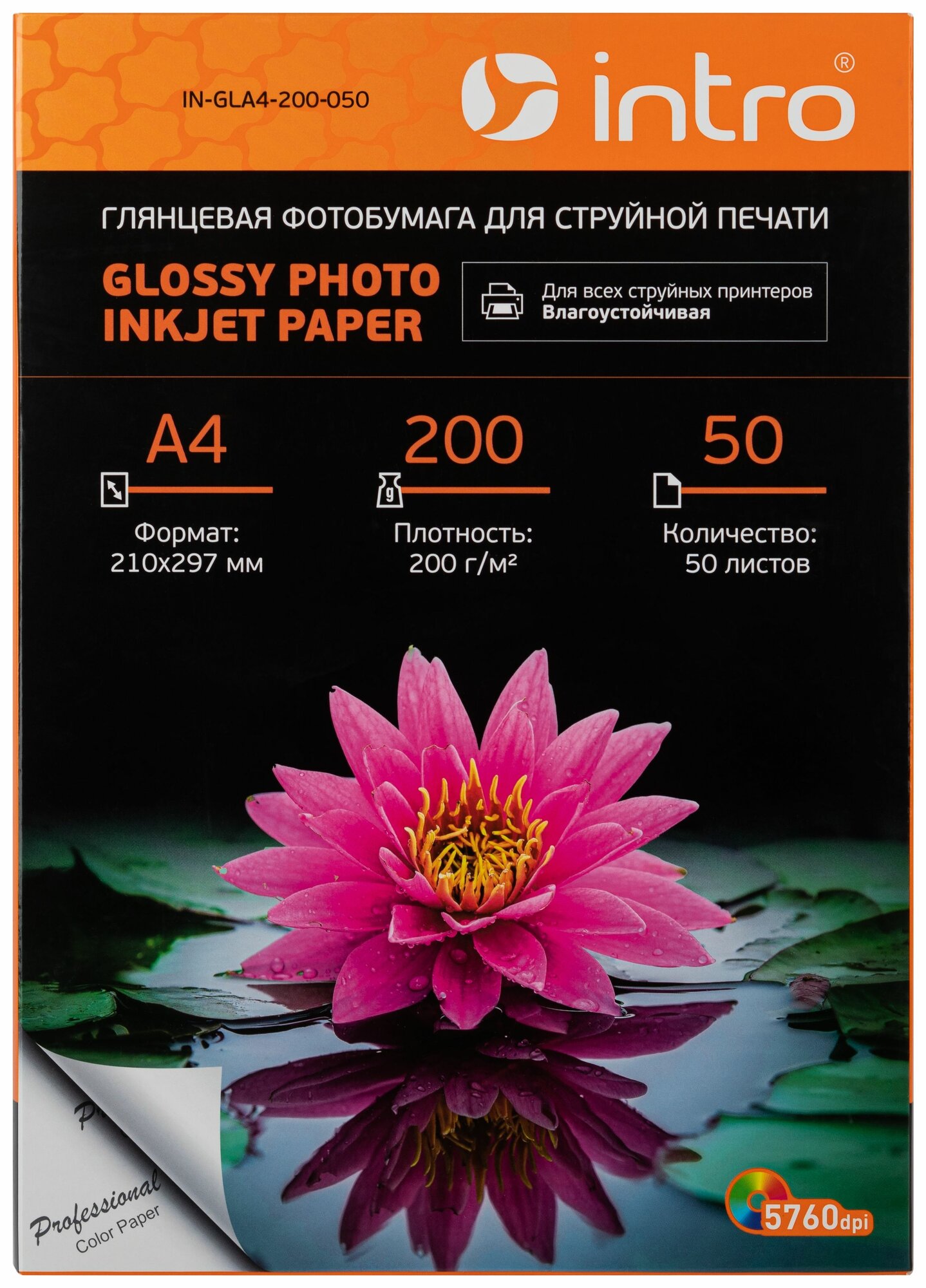 Купить Фотобумага Intro GLA4-200-050, A4 глянцевая 200г/м2, 50 листов