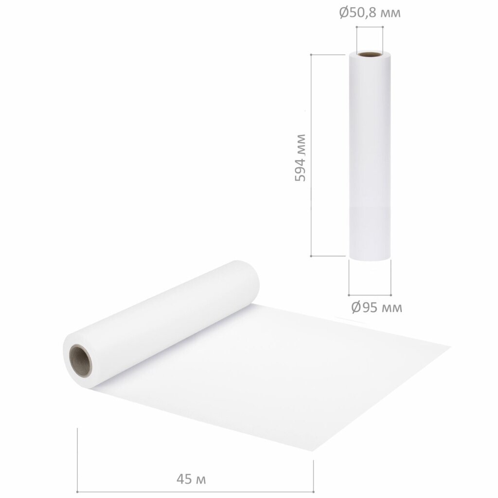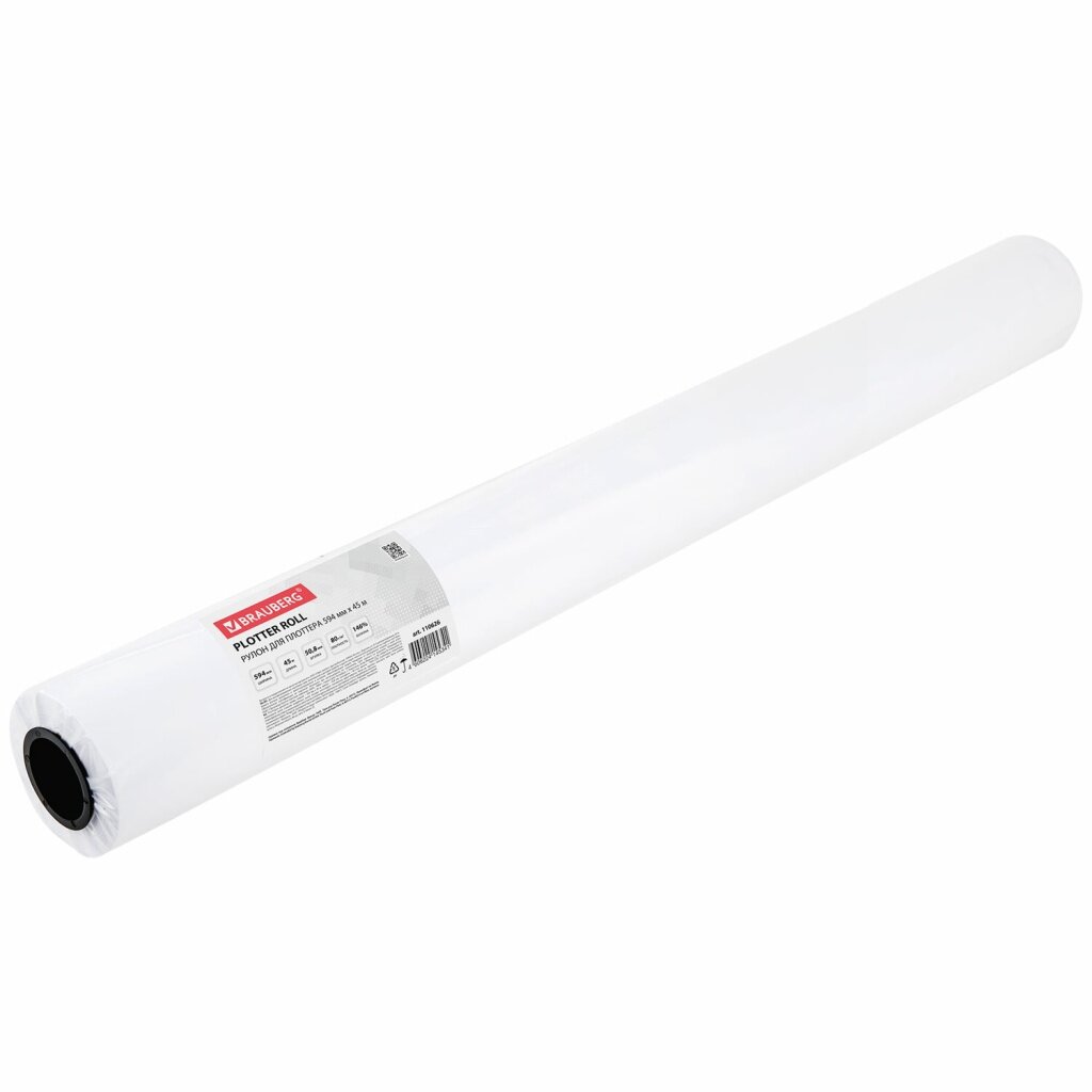 Купить Бумага широкоформатная рулон для плоттера, 594 мм х 45 м х втулка 50,8 мм, 80 г/м2, белизна CIE 146%, BRAUBERG, 110626
