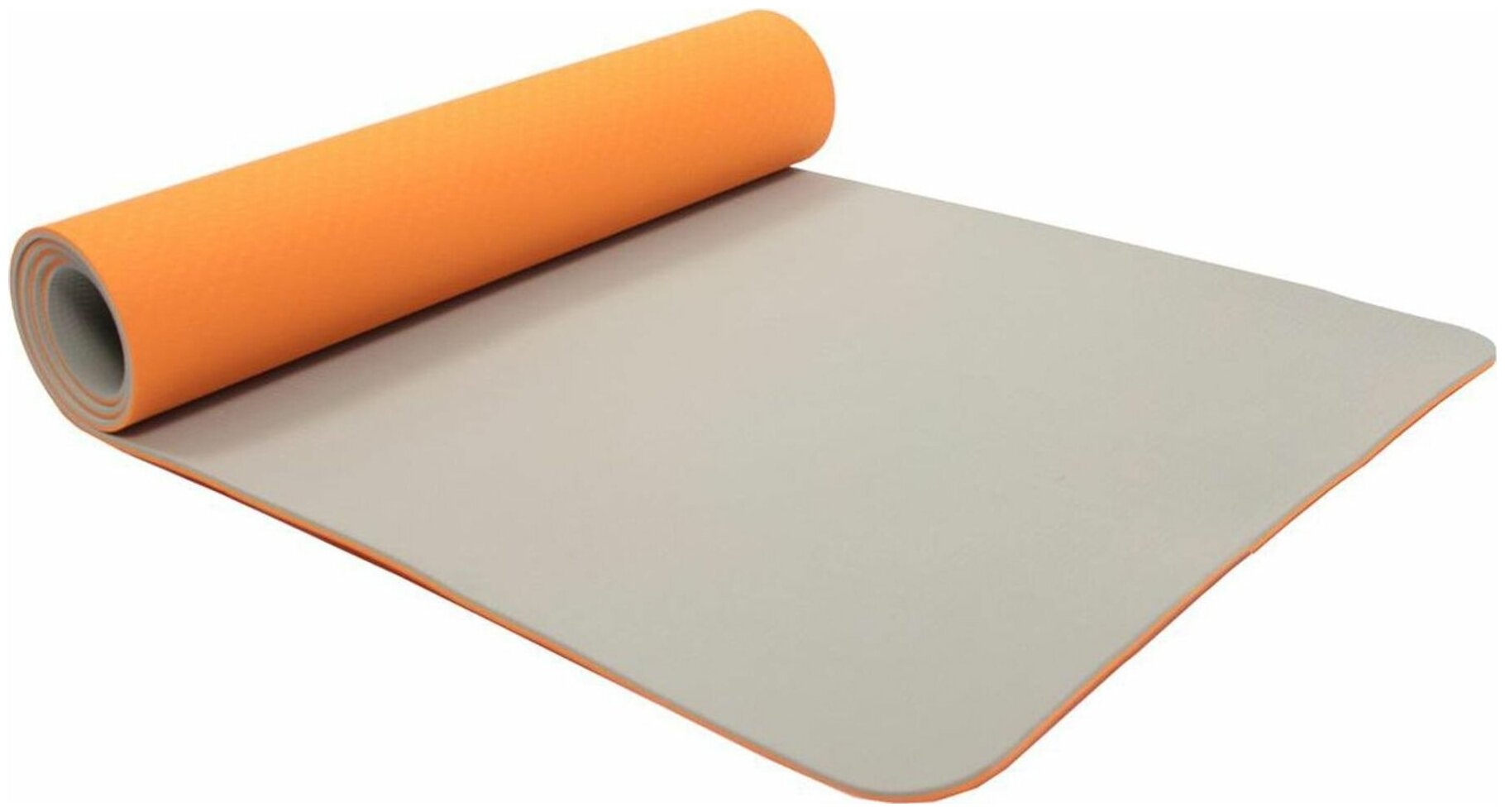 Коврик для йоги и фитнеса 183*61*0,6 TPE двухслойный оранжевый/серый