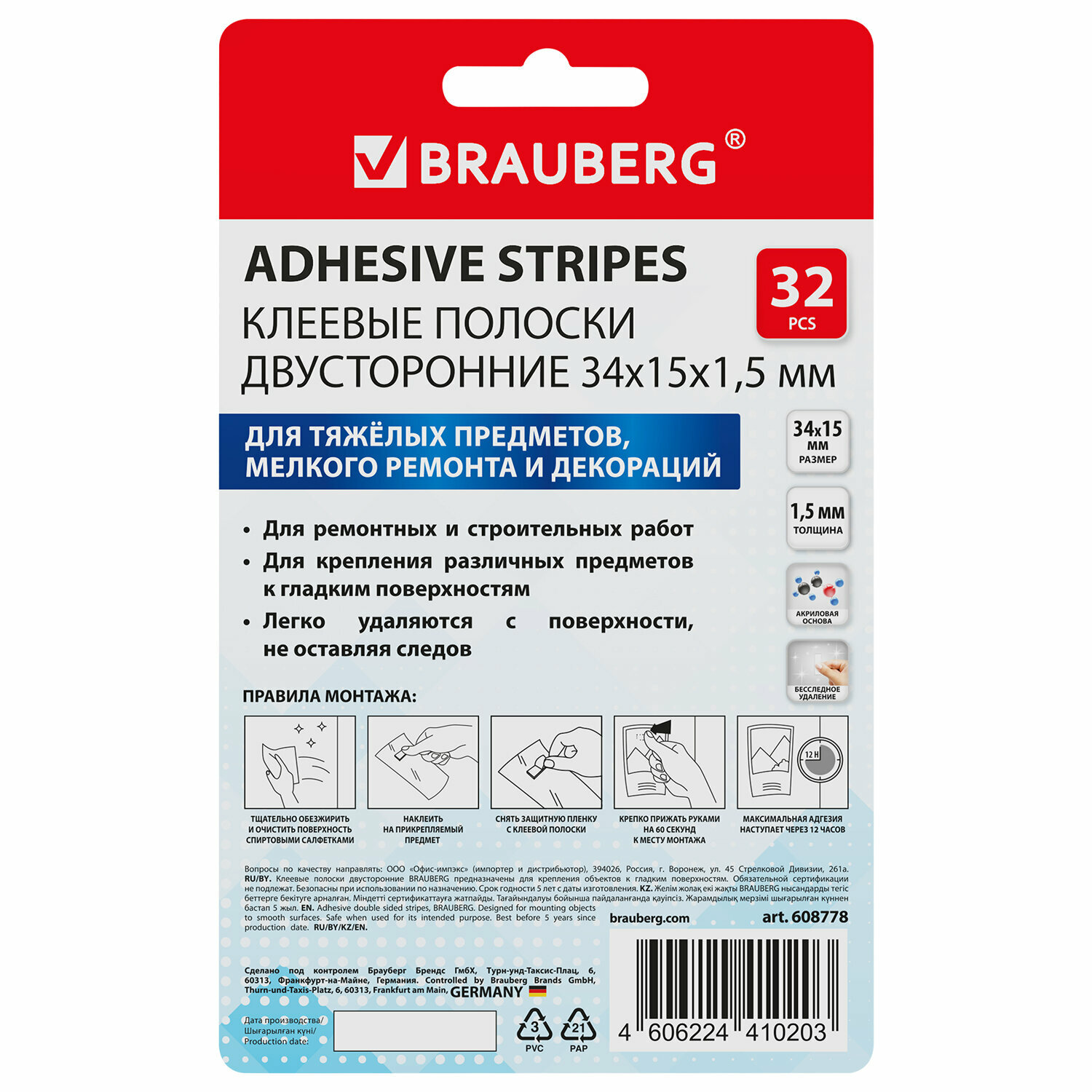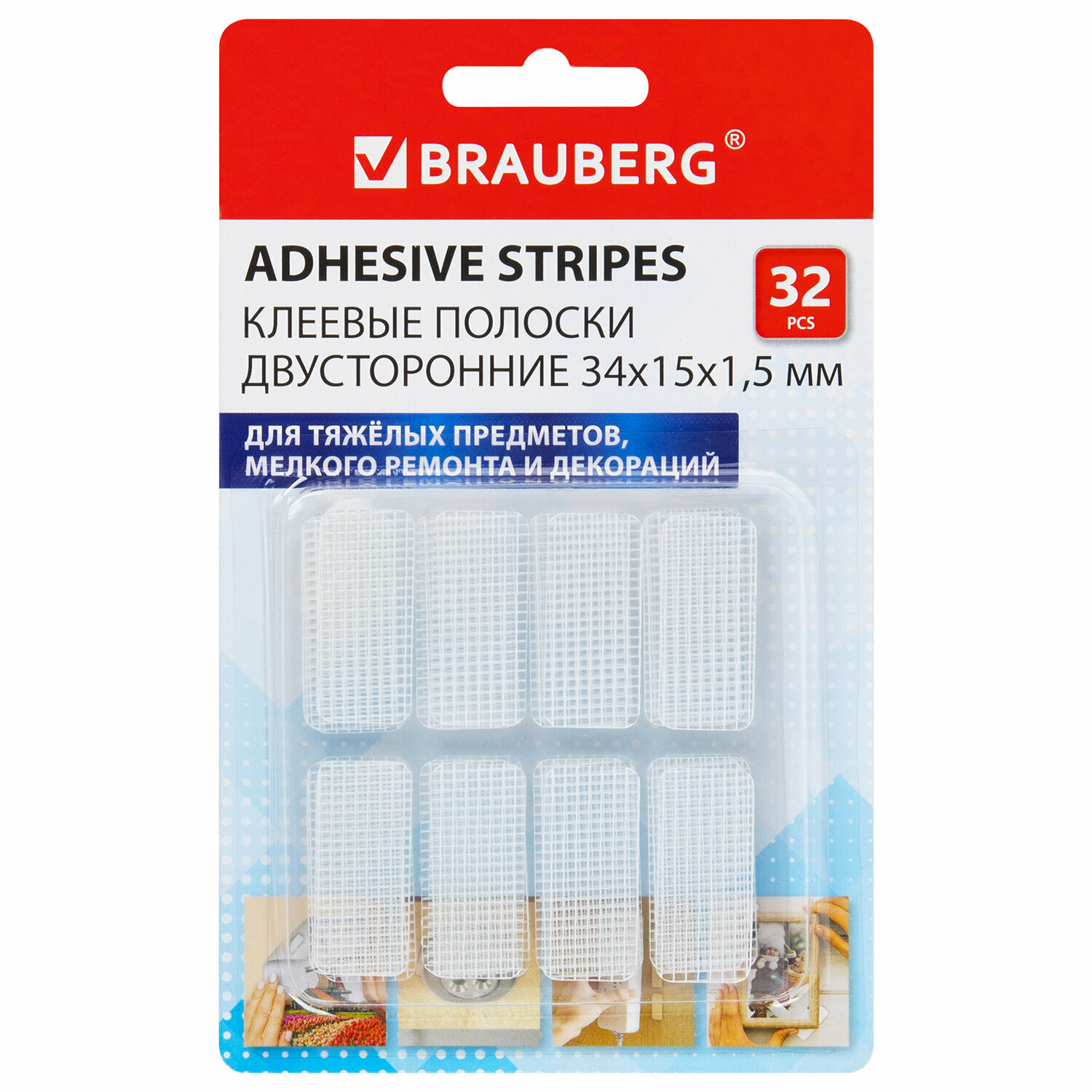 Клеящие подушечки, клеевые полоски, клейкие пластины 32 штуки двусторонние белые, 34х15 мм, акриловая основа, бесследное удаление, Brauberg, 608778 интересное: