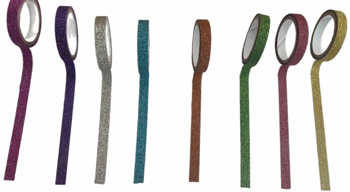 Декоративная клейкая лента, скотч цветной декоративный 6 мм х 1,5 м х 8 шт, Fancy Creative интересное: