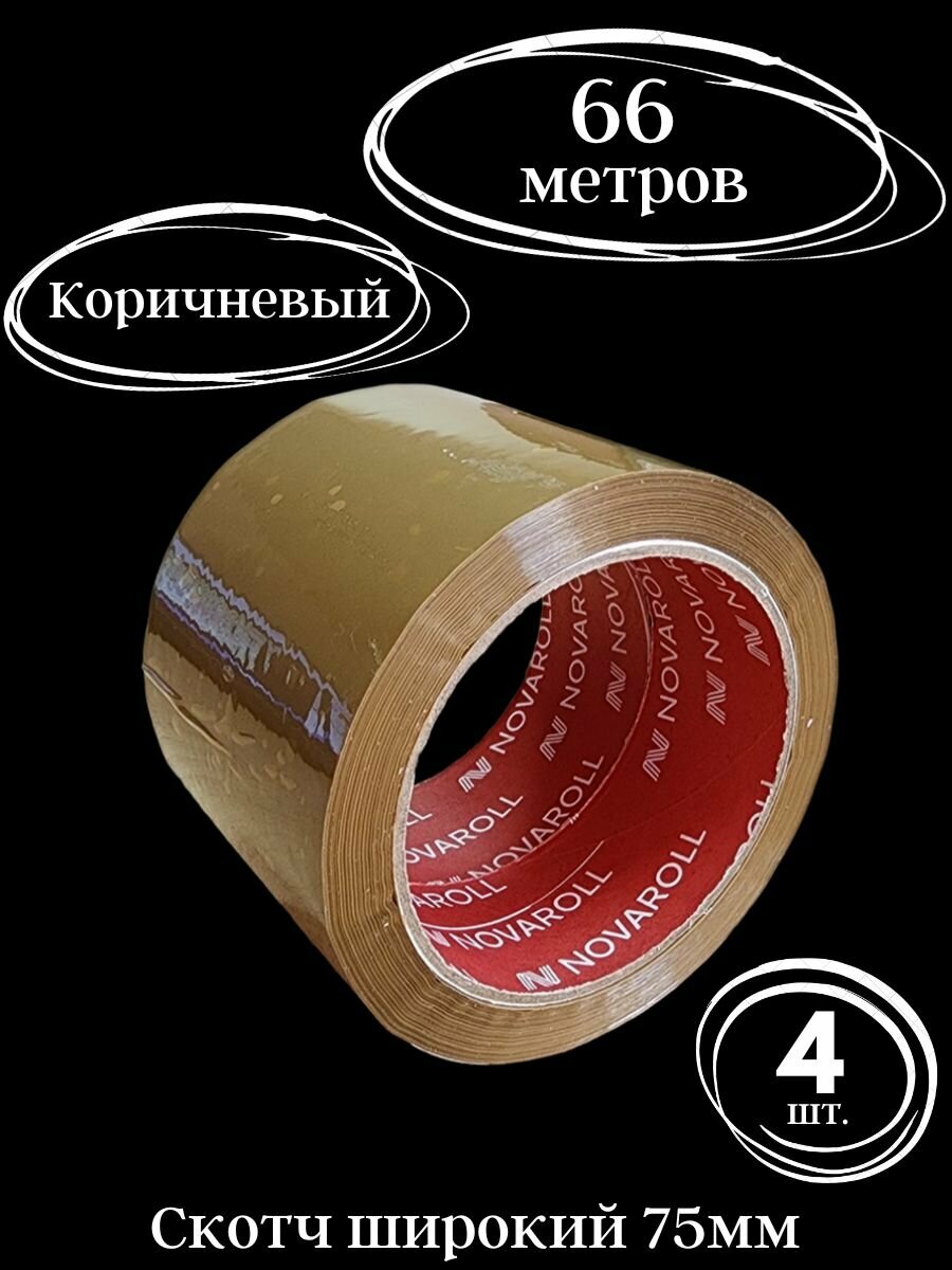 Купить Скотч широкий коричневый 75 мм, 66 м, 4 шт, клейкие ленты "Панфилов Е П", коричневый цвет