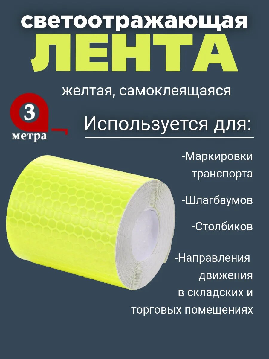 Лента клейкая Makkalina, светоотражающая, ПВХ, 3м х 5см, желтая интересное: