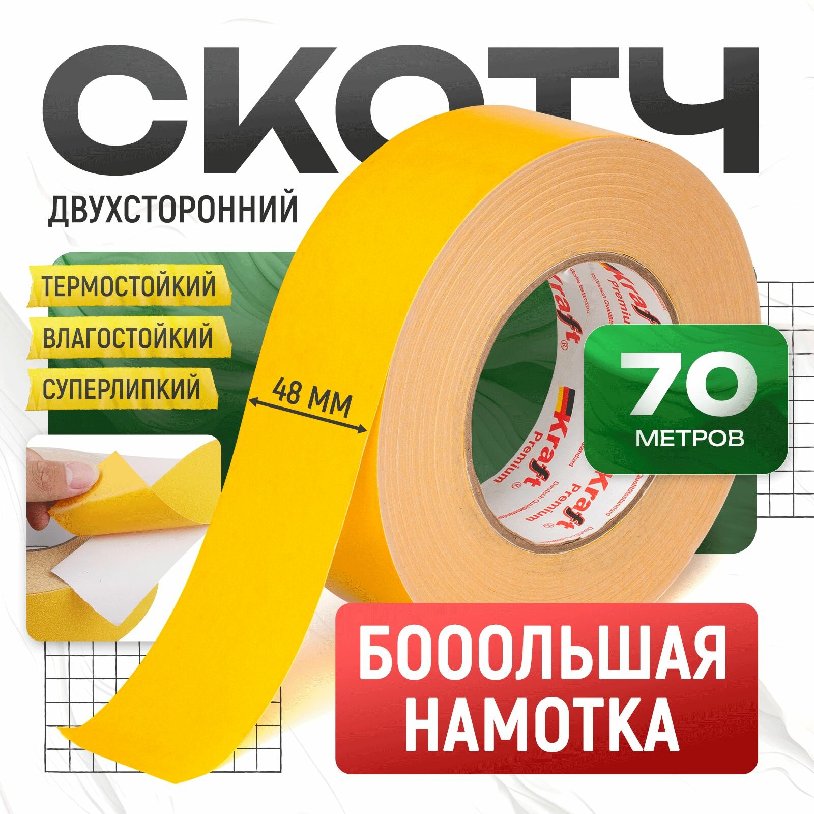 Купить Двухсторонний скотч Kraft, полипропиленовый, каучуковый клей, 48мм х 70м двусторонний скотч скотч двухсторонний