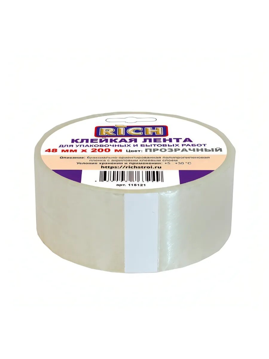 Скотч "RICH" 48мм х200м , упаковочная клейкая лента, односторонняя, цвет : прозрачный 1 шт