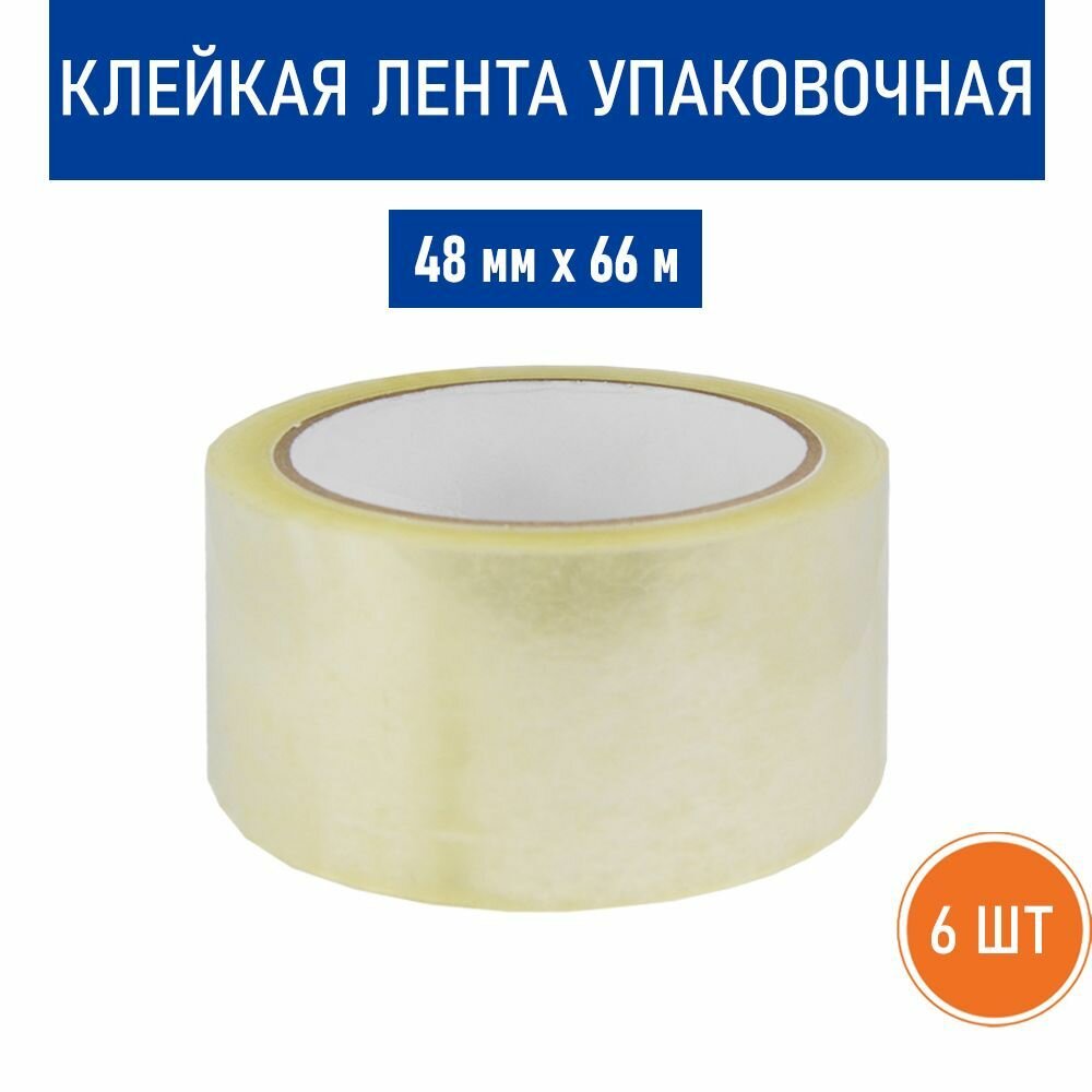 Купить Клейкая лента упаковочная прозрачная 48 мм х 66 м, толщина 43 мкм. 6 шт
