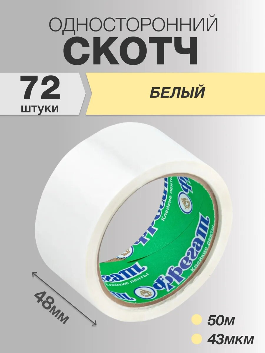 Купить Скотч белый Фрегат широкий 48мм 50 метров 43мкм, 72 ролика в коробке