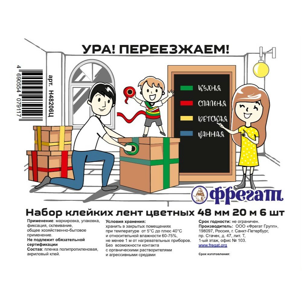 Клейкая лента 48 мм, разноцветная, 20 м, Фрегат, 6 шт, Н48206Ц интересное:
