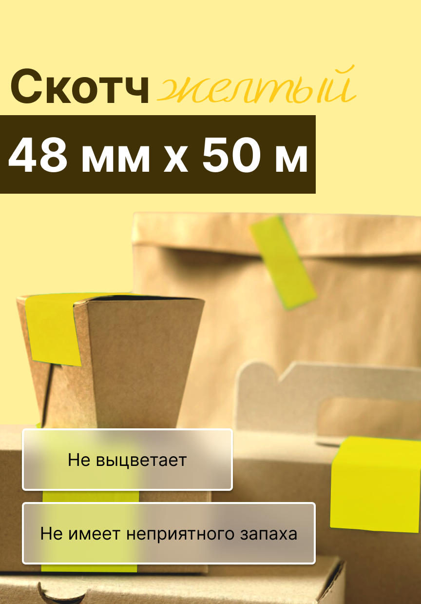 Скотч упаковочный односторонний 48мм х 50м, желтый, 45 мкм, 2 штуки интересное: