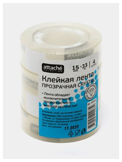 Ниже Вы можете прочитать отзывы на Клейкая лента канцелярская Attache Selection 15х33 кристальная 4 шт./уп., ознакомится с подробными характеристиками, посмотреть интересные обзоры и фотографии на Клейкая лента канцелярская Attache Selection 15х33 кристальная 4 шт./уп..