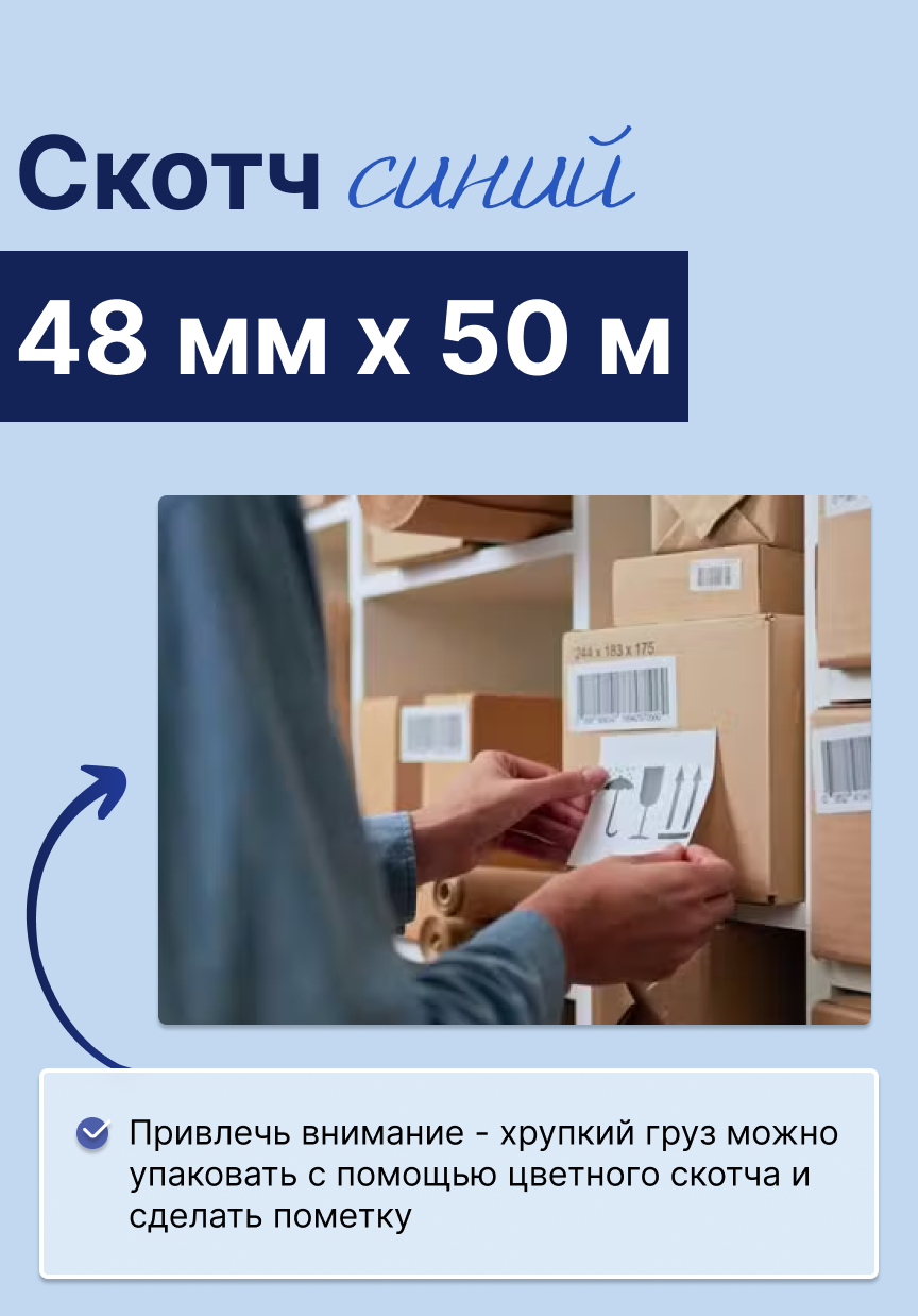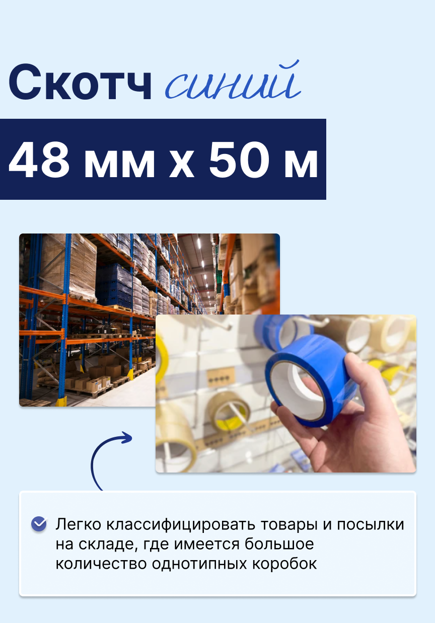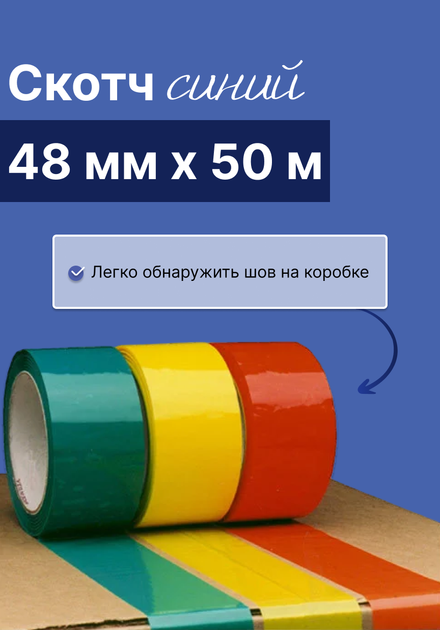 Скотч упаковочный односторонний 48мм х 50м, синий, 45 мкм, 2 штуки интересное: