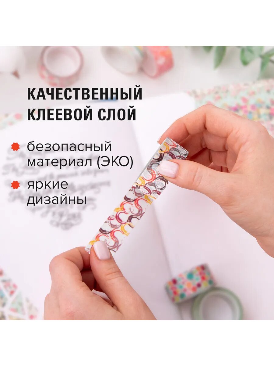 Купить Клейкие WASHI-ленты для декора "Микс №3", 15 мм х 3 м, 7 цв