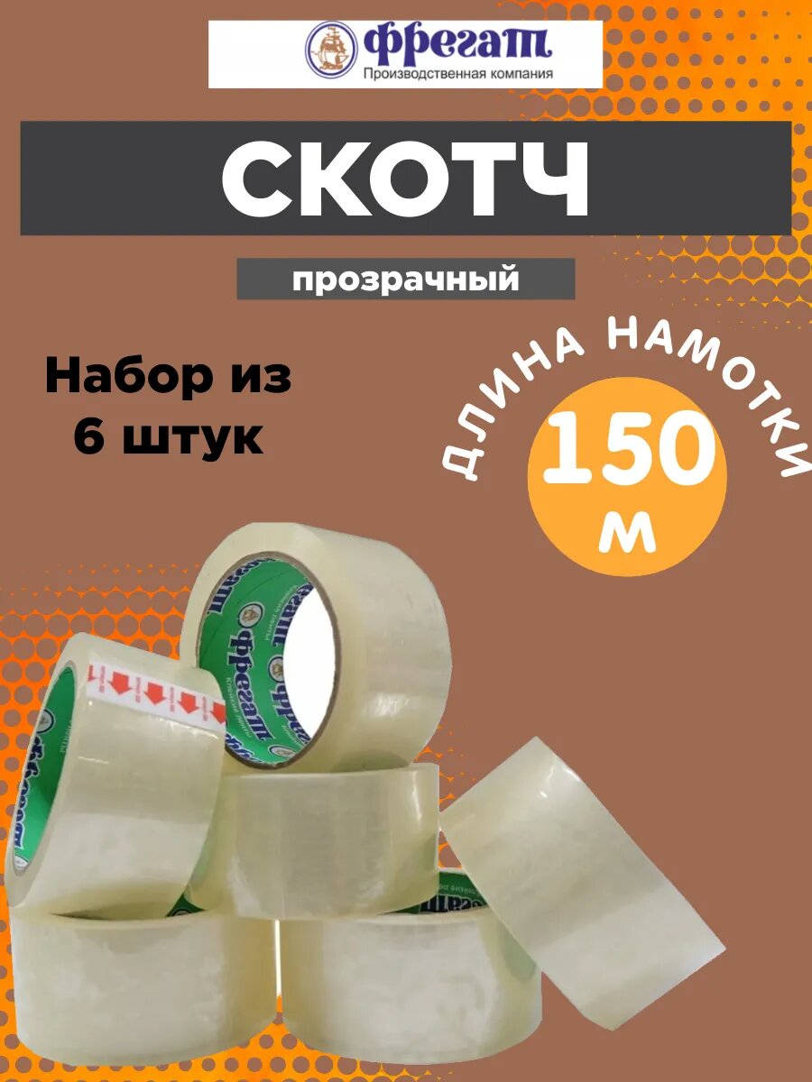 Скотч Фрегат Групп, односторонний, прозрачный, 48х150 м, 6 шт. интересное: