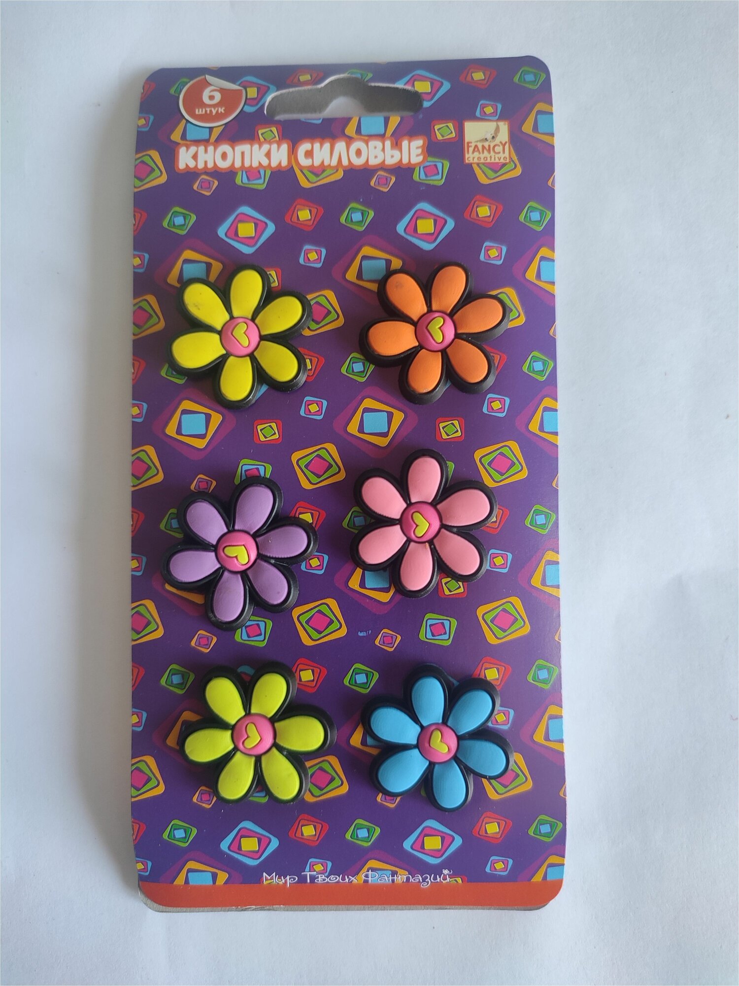 Кнопки силовые канцелярские 6 шт, 10 мм, для детского творчества - цветы Маргаритки. Fancy Creative интересное: