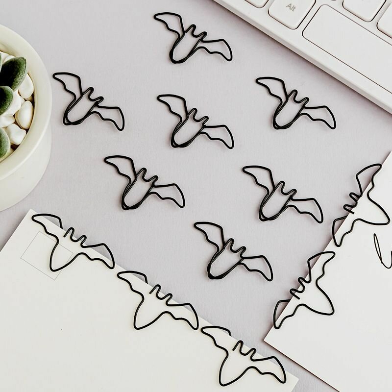 Купить Канцелярские скрепки "Летучая мышь" 10 шт, черные - стильный аксессуар для документов