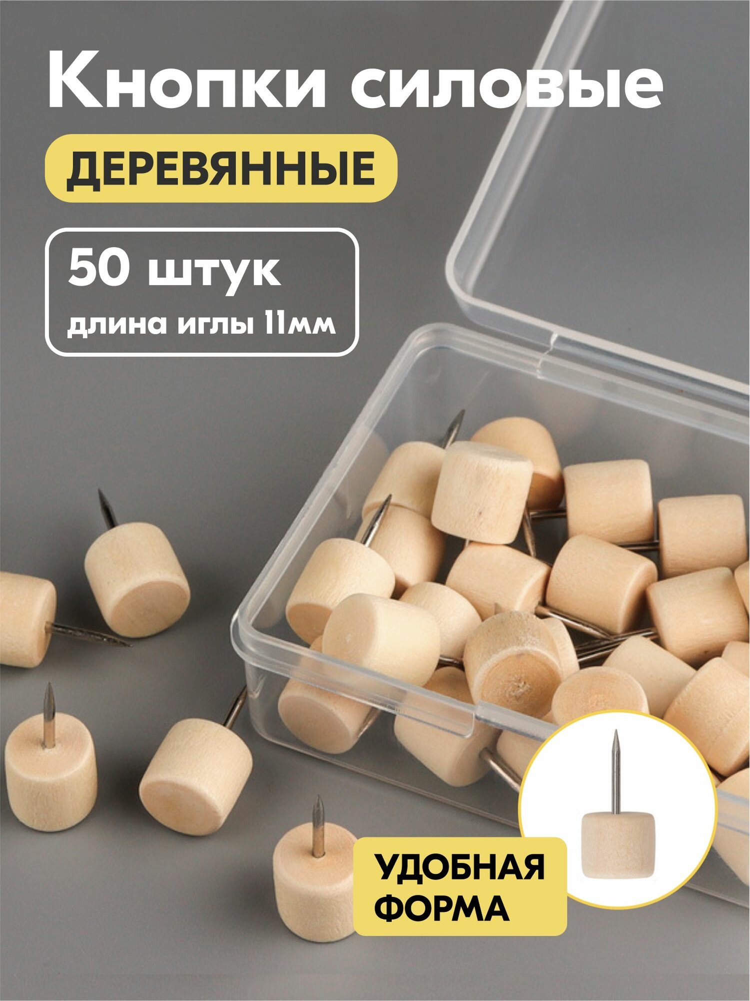 Купить Кнопки канцелярские гвоздики, кнопки силовые для пробковых досок, деревянные, декоративные, 50 штук, светлое дерево