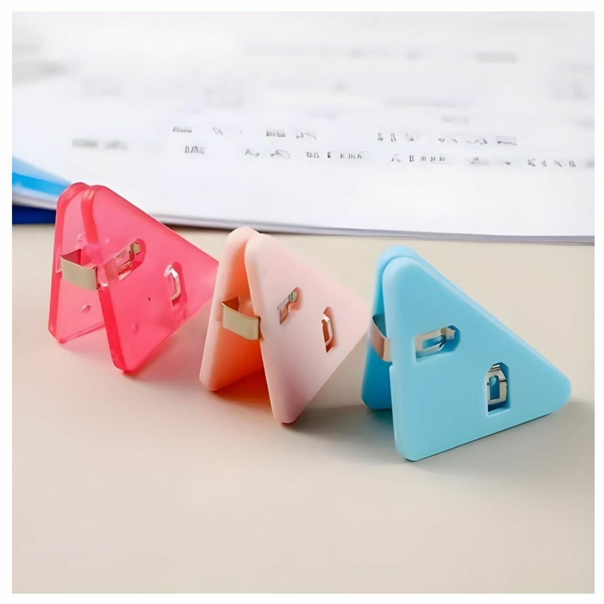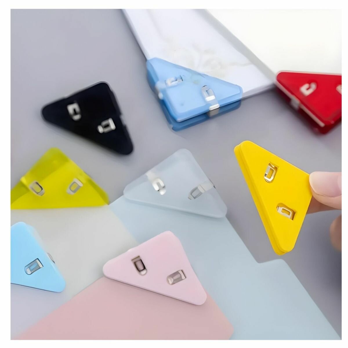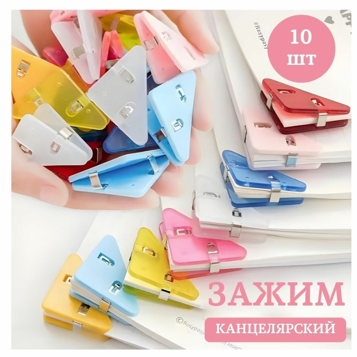 Зажимы треугольной формы для бумаг и документов. Набор из 10 шт. Цвет микс интересное: