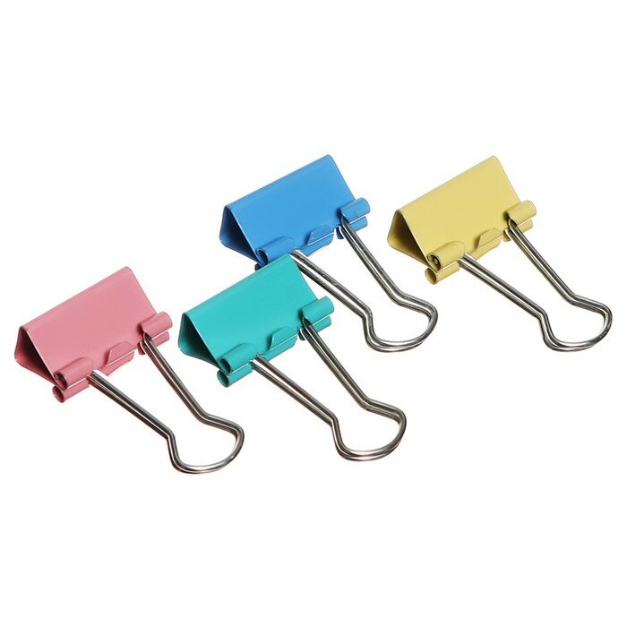 Набор зажимов для бумаг цветных 41мм, 12 штук, 5 цветов, в картонной коробке