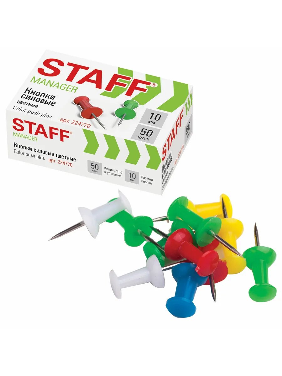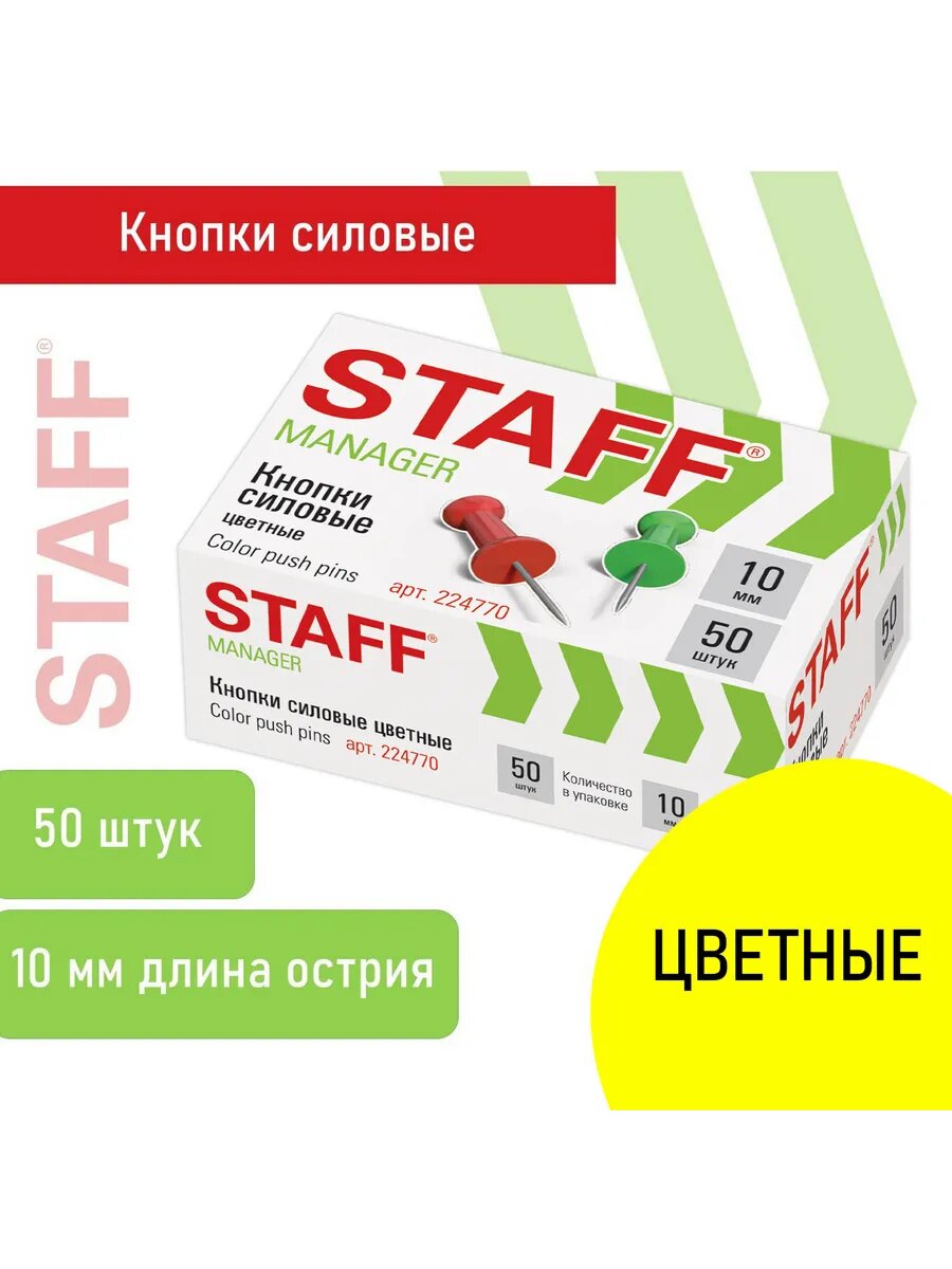 24шт Силовые кнопки-гвоздики цветные STAFF 50 штук, в карто интересное: