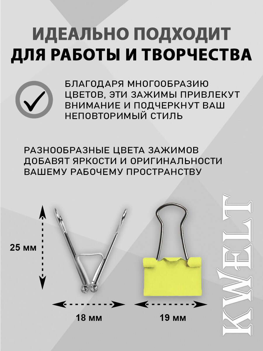 Зажимы " KWELT " цветные Macarons 19мм 40шт/уп, пластиковая упаковка