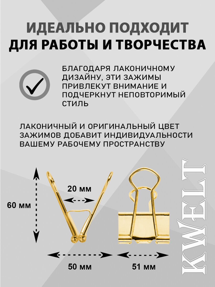 Купить Зажимы " KWELT " золотые 51мм 12шт/уп металл, пластиковая упаковка