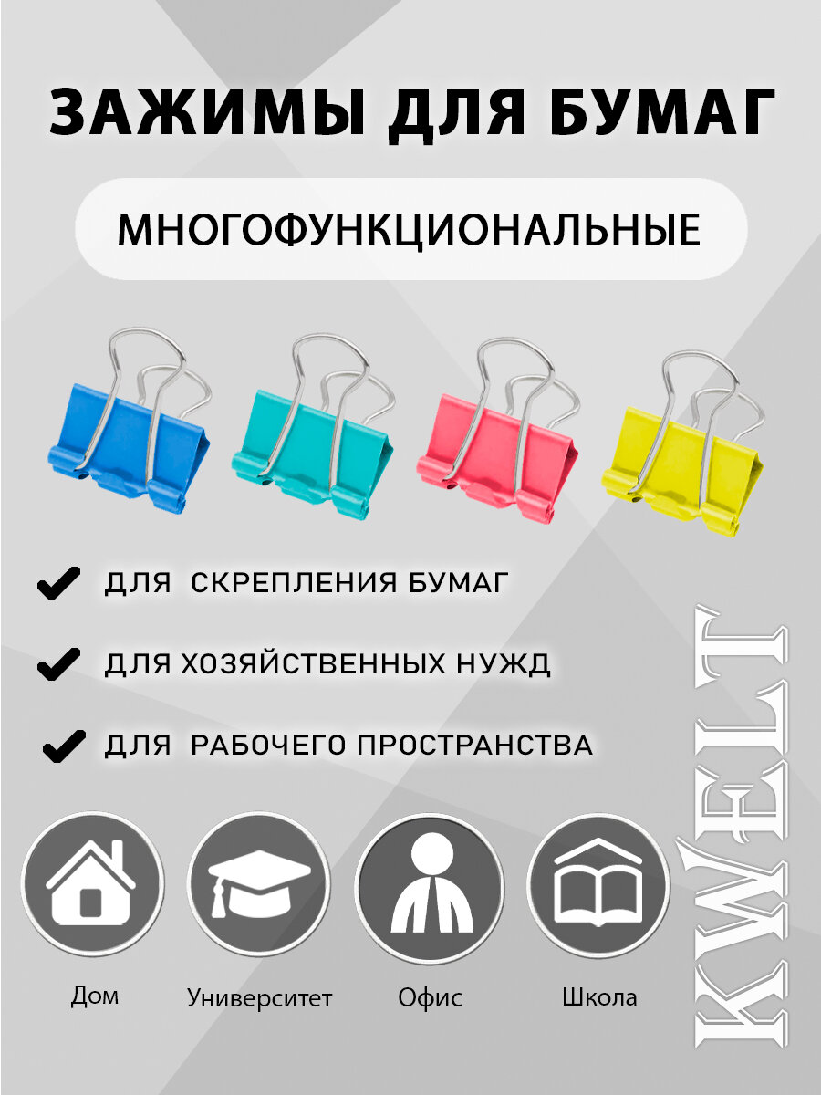СохранитьЗажимы канцелярские, металлические KWELT 15 мм, ассорти 60 шт. интересное: