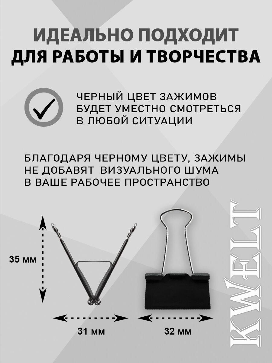 Купить Зажимы KWELT, для бумаги, металл, черные, 32мм, в упак. 12шт.