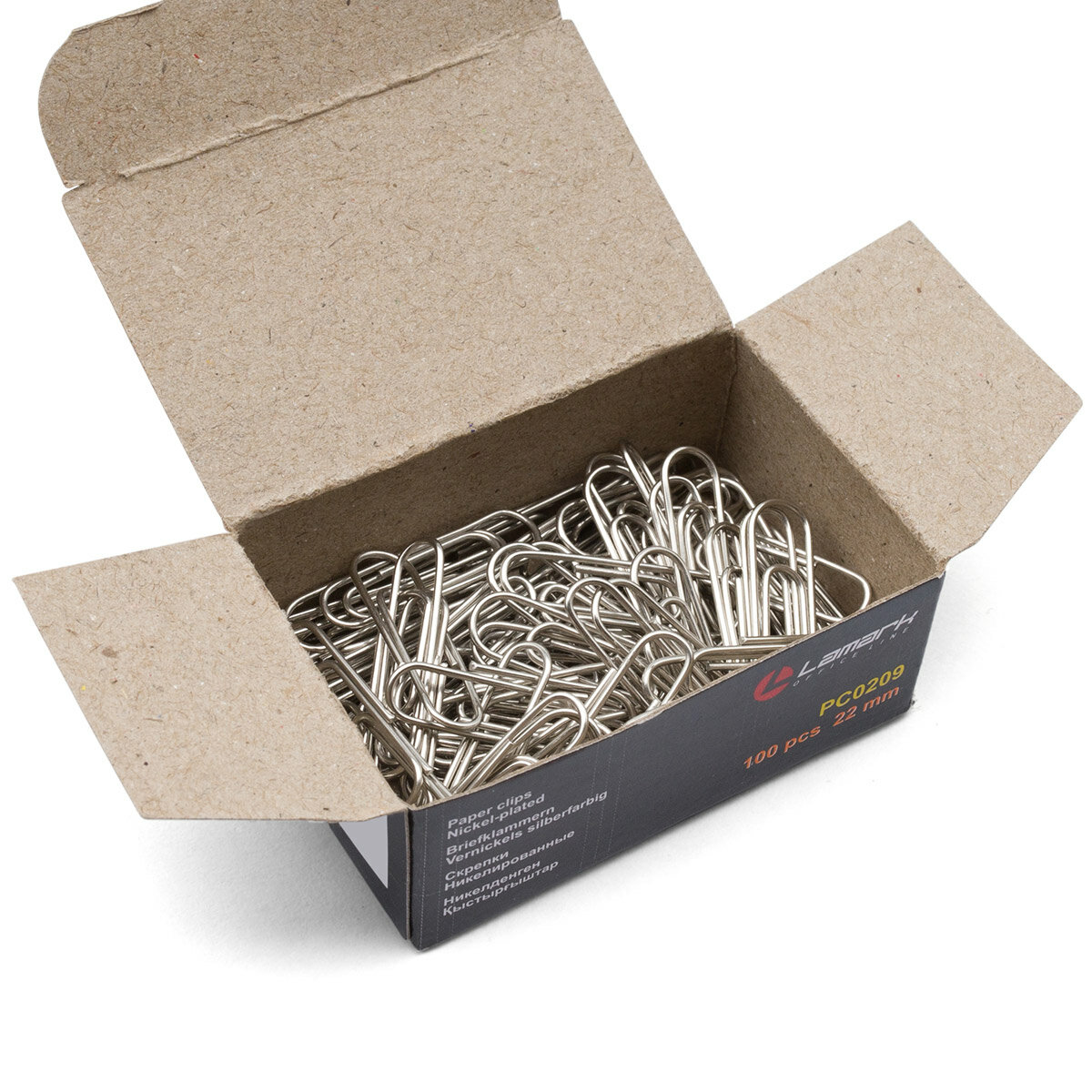 Купить Скрепки канцелярские никелированные, LAMARK 209, 2,2 см, круглые, 100 шт