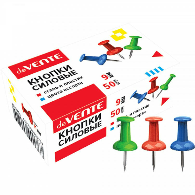 Купить Кнопки силовые Гвоздики 50шт/уп. deVENTE цветные арт.4132401. Количество в наборе 10 шт.