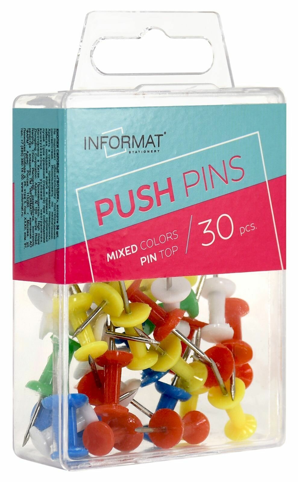 Купить Кнопки силовые INFORMAT 30 штук, гвоздики, цветные, в пластиковом боксе